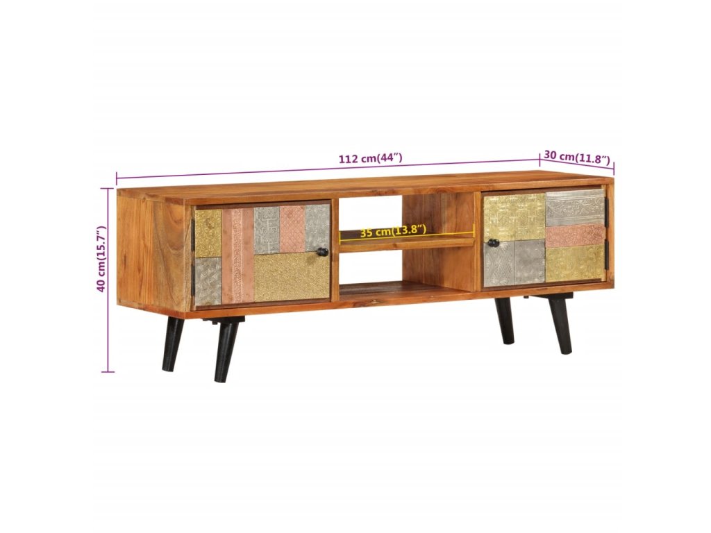 - Masívne akáciové drevo: TV skrinka je vyrobená z akáciového dreva. Masívne akáciové drevo je krásny prírodný materiál. Akáciové drevo je drevo tropického listnatého stromu, ktoré je husté, pevné a trvácne.