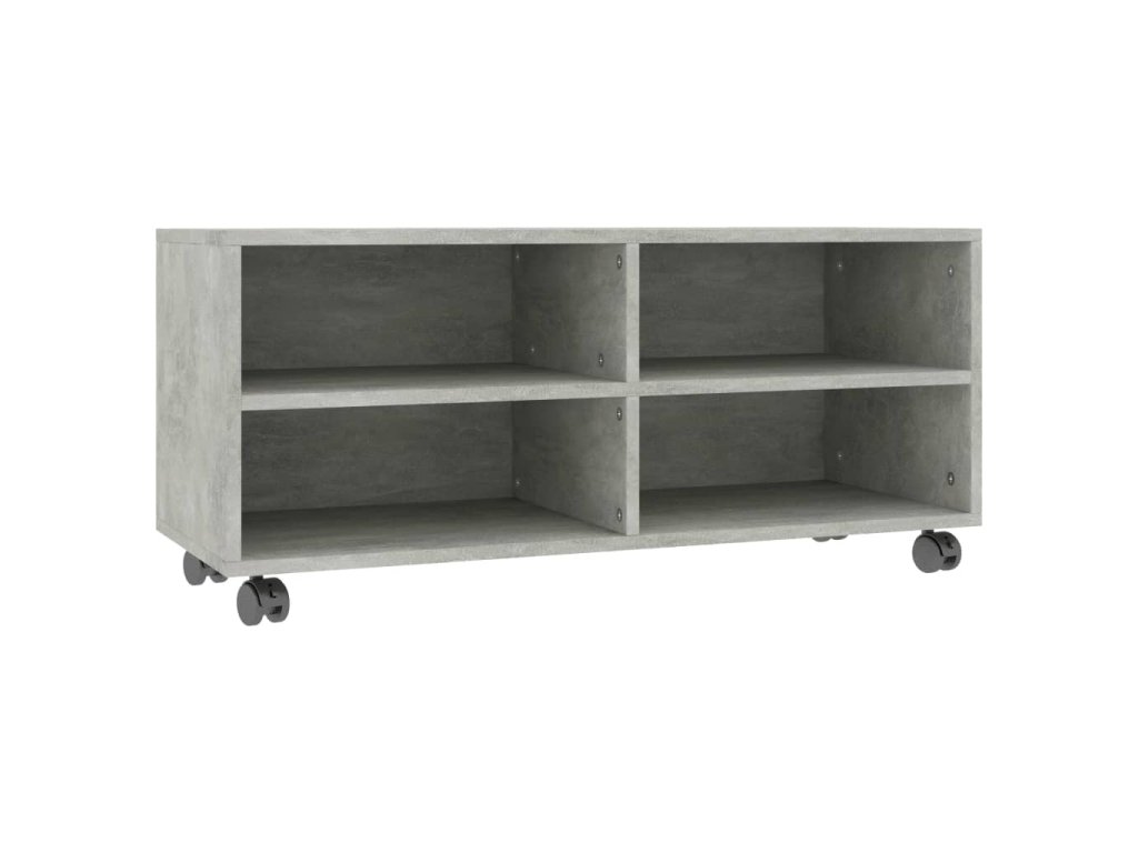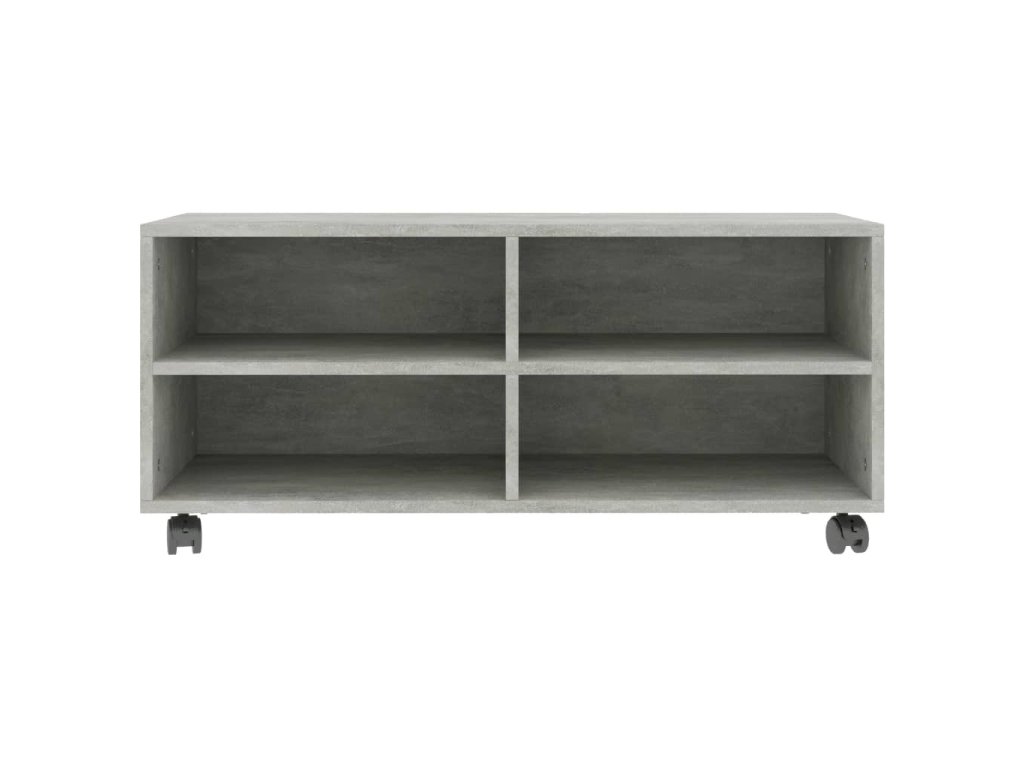 TV skrinka je vyrobená z dosky, čo zaručuje jej pevnosť, trvácnosť a dlhú životnosť. Bola navrhnutá so 4 priehradkami a ponúka dostatok úložného priestoru pre úhľadné usporiadanie časopisov, kníh, DVD a multimediálnych zariadení, ktoré chcete mať na dosah ruky. Navyše sa jednoducho premiestňuje vďaka 4 kolieskam. 2 kolieska sú uzamykateľné, takže ostane pevne na mieste.