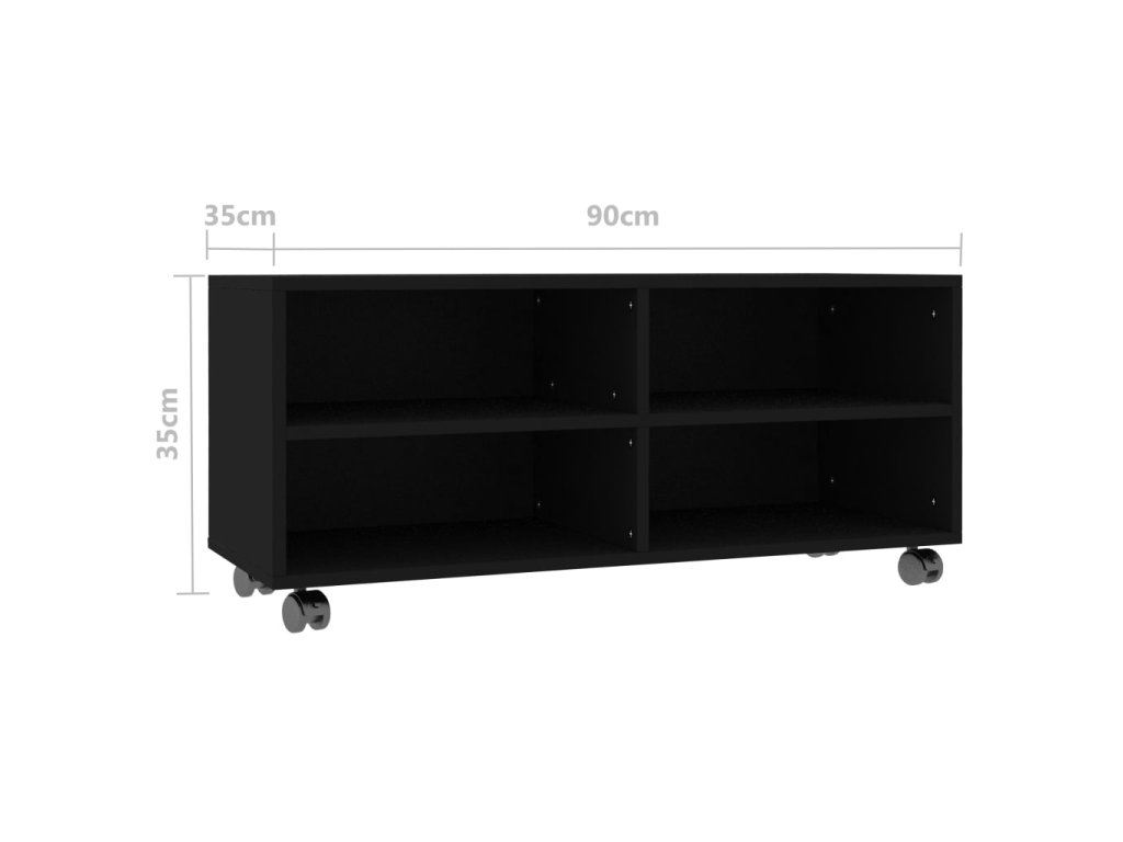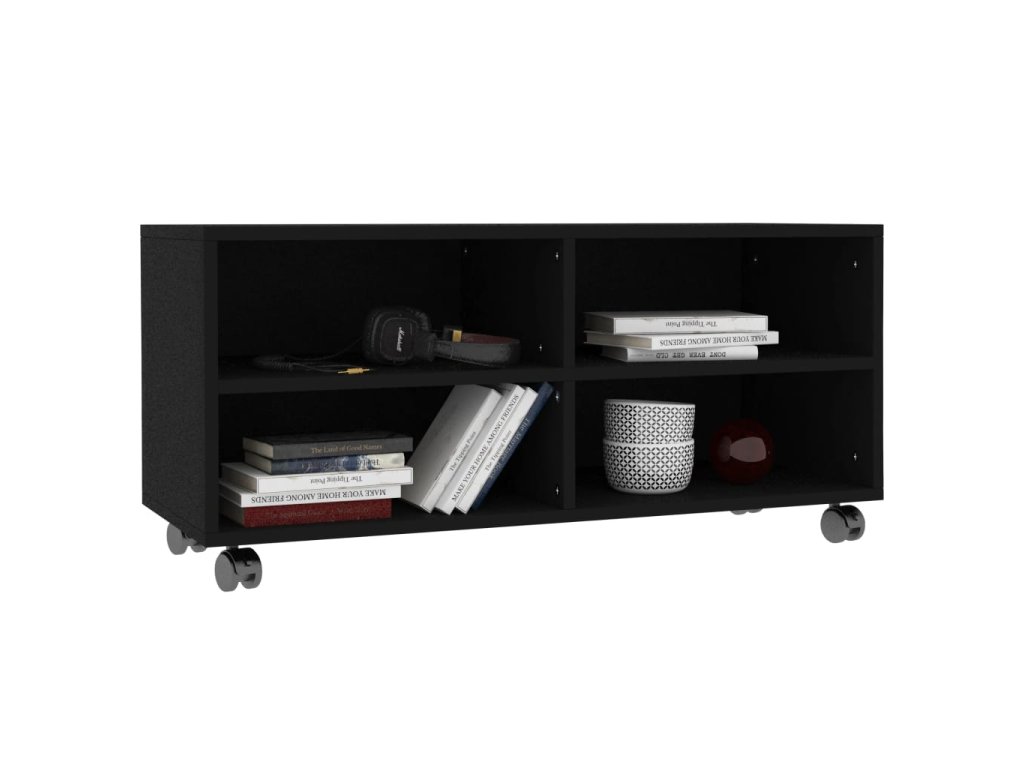 TV skrinka je vyrobená z dosky, čo zaručuje jej pevnosť, trvácnosť a dlhú životnosť. Bola navrhnutá so 4 priehradkami a ponúka dostatok úložného priestoru pre úhľadné usporiadanie časopisov, kníh, DVD a multimediálnych zariadení, ktoré chcete mať na dosah ruky. Navyše sa jednoducho premiestňuje vďaka 4 kolieskam. 2 kolieska sú uzamykateľné, takže ostane pevne na mieste.