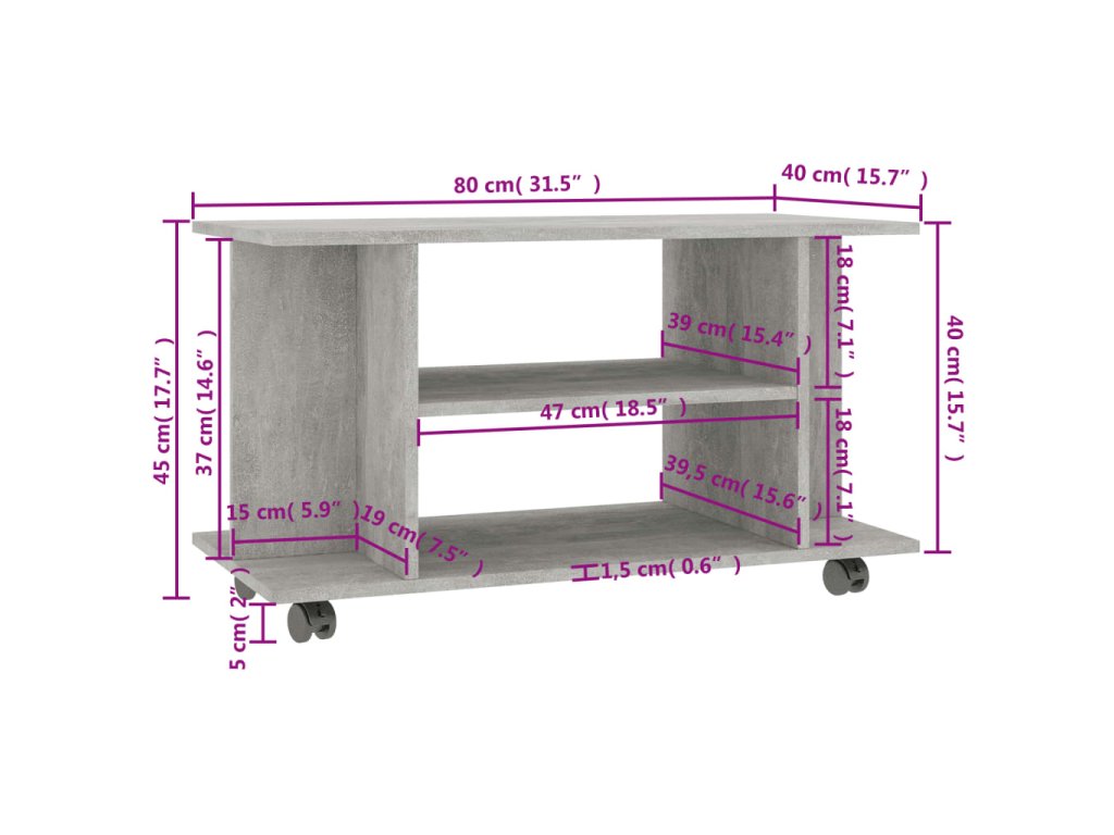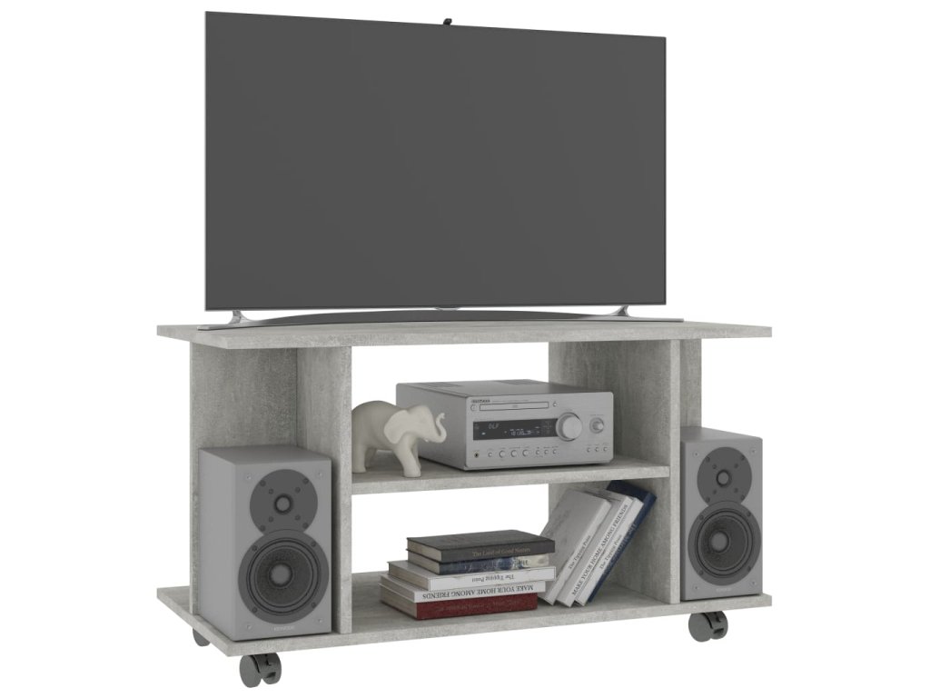 TV skrinka je vyrobená z kompozitné drevo, čo zaručuje jej pevnosť, trvácnosť a dlhú životnosť. Bola navrhnutá so 4 otvorenými policami a ponúka dostatok úložného priestoru pre úhľadné usporiadanie časopisov, kníh, DVD a multimediálnych zariadení, ktoré chcete mať na dosah ruky. Navyše sa vďaka 4 kolieskam jednoducho premiestňuje. 2 kolieska sú uzamykateľné, takže ostane pevne na mieste.