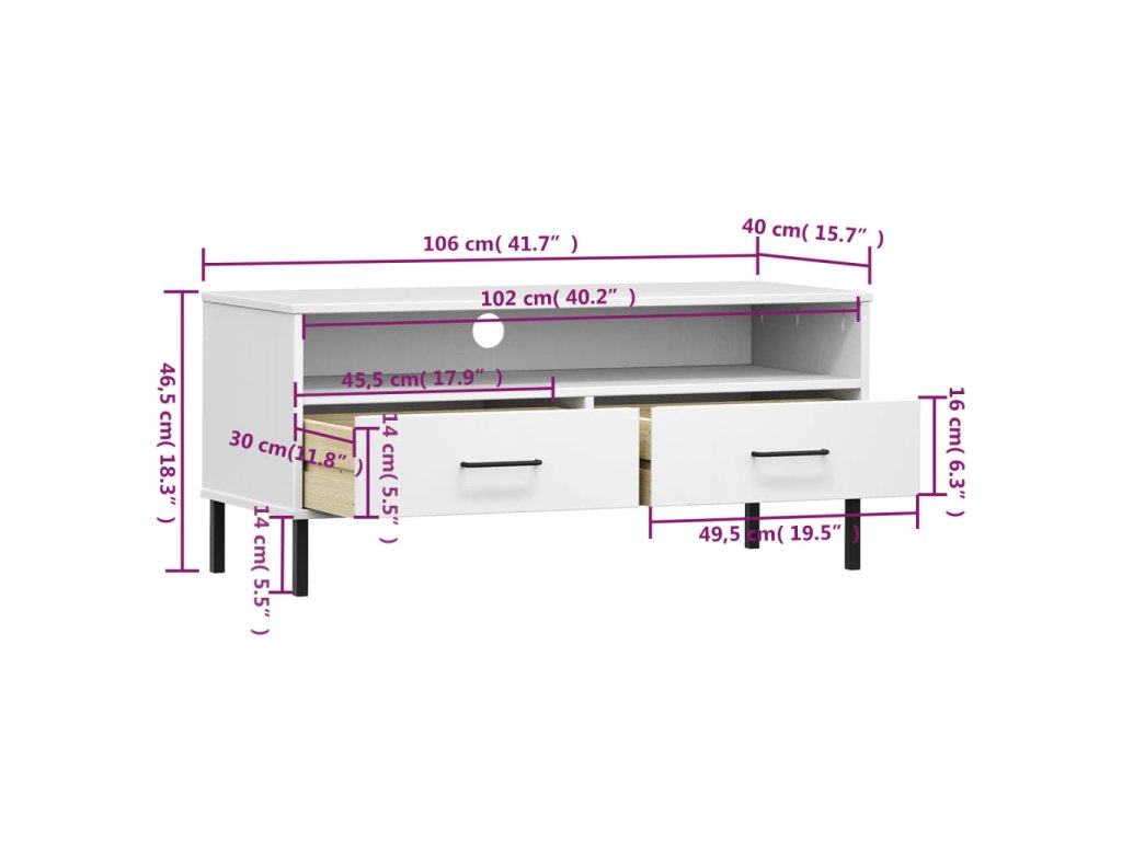 - Veľký úložný priestor: TV skrinka má 1 priečinok a 2 zásuvky, vďaka ktorým je ideálna na uloženie vašich časopisov, DVD alebo iných predmetov.