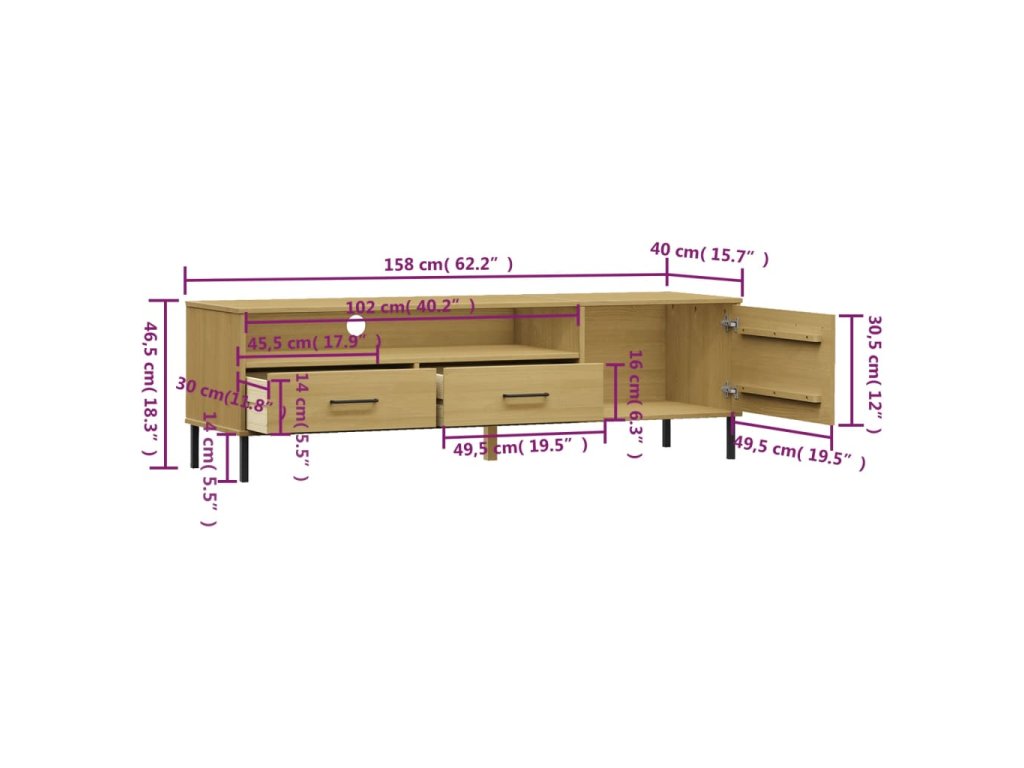 - Odolný materiál: TV stolík je vyrobený z masívneho borovicového dreva, čo je krásny prírodný materiál. Borovicové drevo má rovnú štruktúru a uzly dodávajú materiálu jeho typický rustikálny vzhľad.