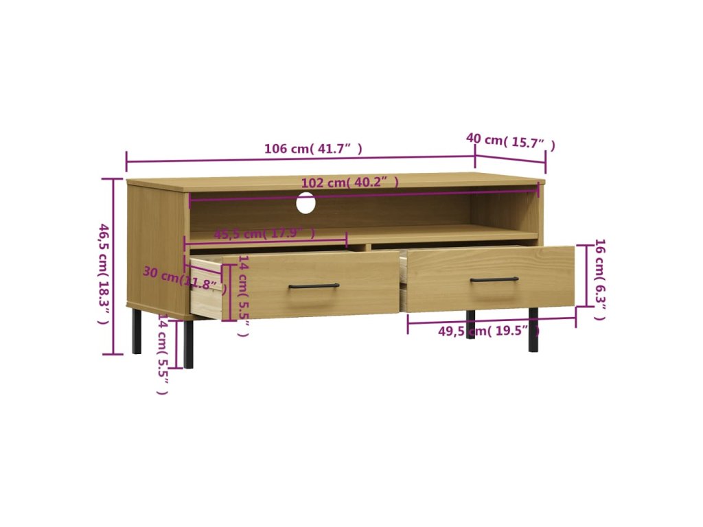 - Veľký úložný priestor: TV skrinka má 1 priečinok a 2 zásuvky, vďaka ktorým je ideálna na uloženie vašich časopisov, DVD alebo iných predmetov.
