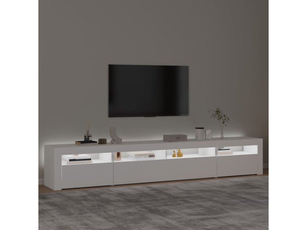 Vďaka modernému a praktickému dizajnu sa tento TV stolík s LED svetlami zaručene stane hlavným prvkom vašej izby.