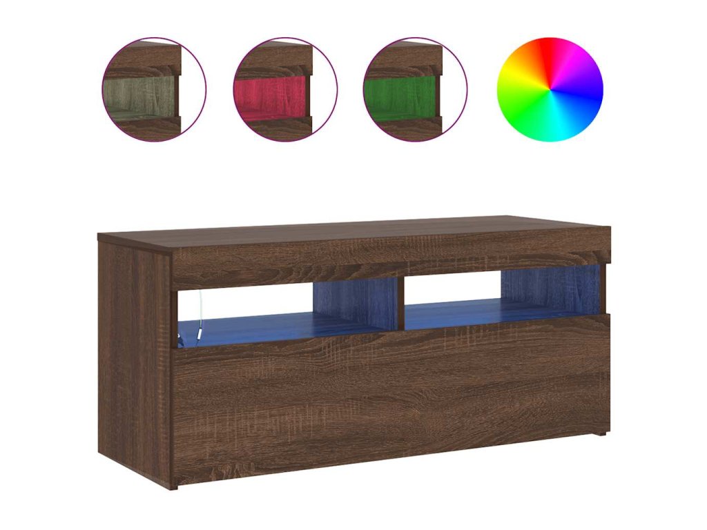 - RGB LED svetlá: Tento TV stojan obsahuje RGB LED svetlá, ktoré môžu automaticky meniť farby svetiel. LED svetlá podčiarkujú moderný vzhľad a prispievajú k štýlovej atmosfére.
