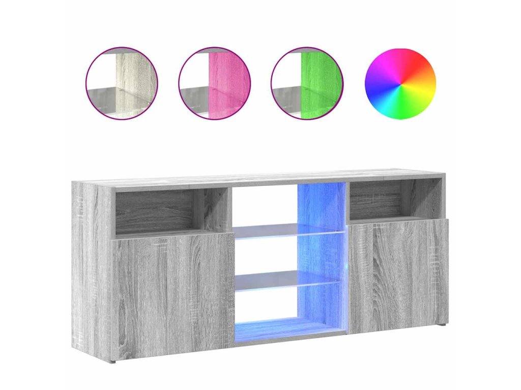 - RGB LED svetlá: Tento TV stojan obsahuje RGB LED svetlá, ktoré môžu automaticky meniť farby svetiel. LED svetlá podčiarkujú moderný vzhľad a prispievajú k štýlovej atmosfére.