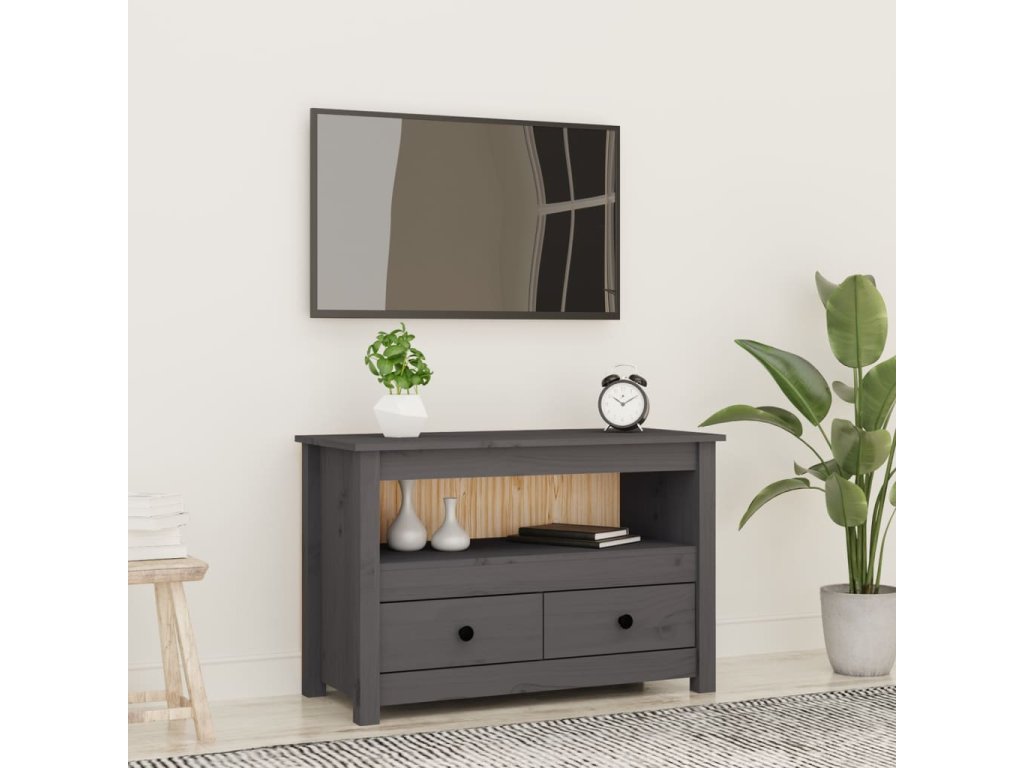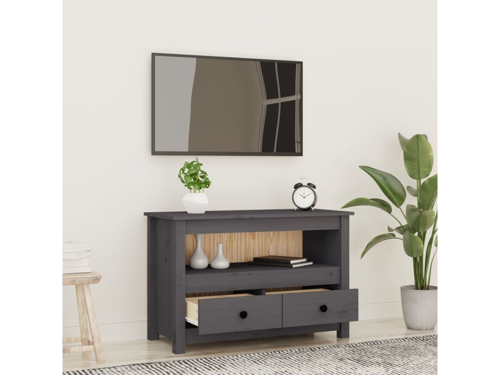 - Dostatok úložného priestoru: Táto TV skrinka s 2 zásuvkami a 1 veľkou priehradkou uľahčuje usporiadanie médií a iných základných predmetov.