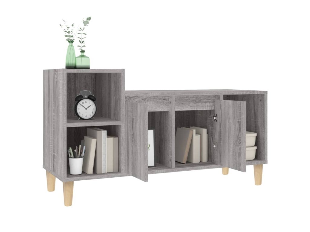 - Dostatok úložného priestoru: Stereo skrinka obsahuje dvierka a priehradky na prehľadné usporiadanie DVD prehrávačov, herných konzol, streamovacích zariadení a nosičov médií.