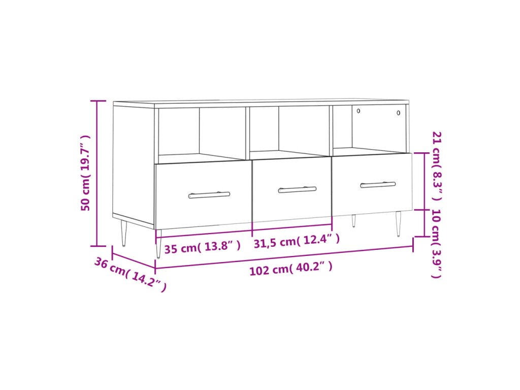 - Rozmery: 102 x 36 x 50 cm (Š x H x V)