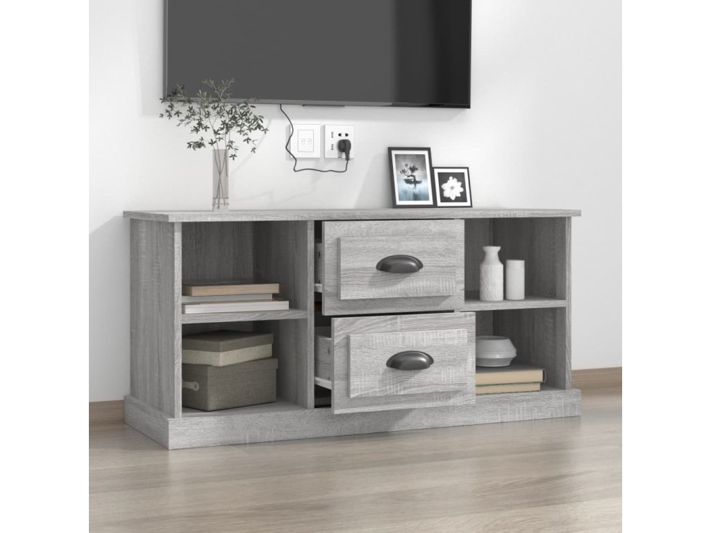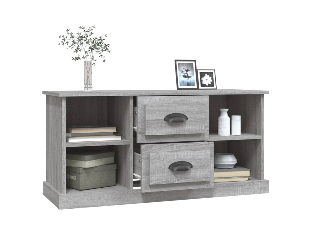 - Pevná doska: Horná časť TV jednotky poskytuje bezpečný povrch na vystavenie dekoratívnych predmetov, fotorámikov alebo rastlín v črepníkoch.