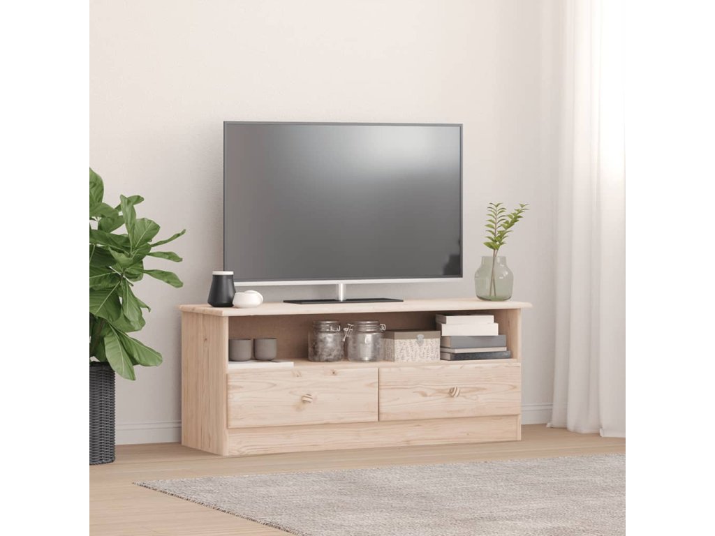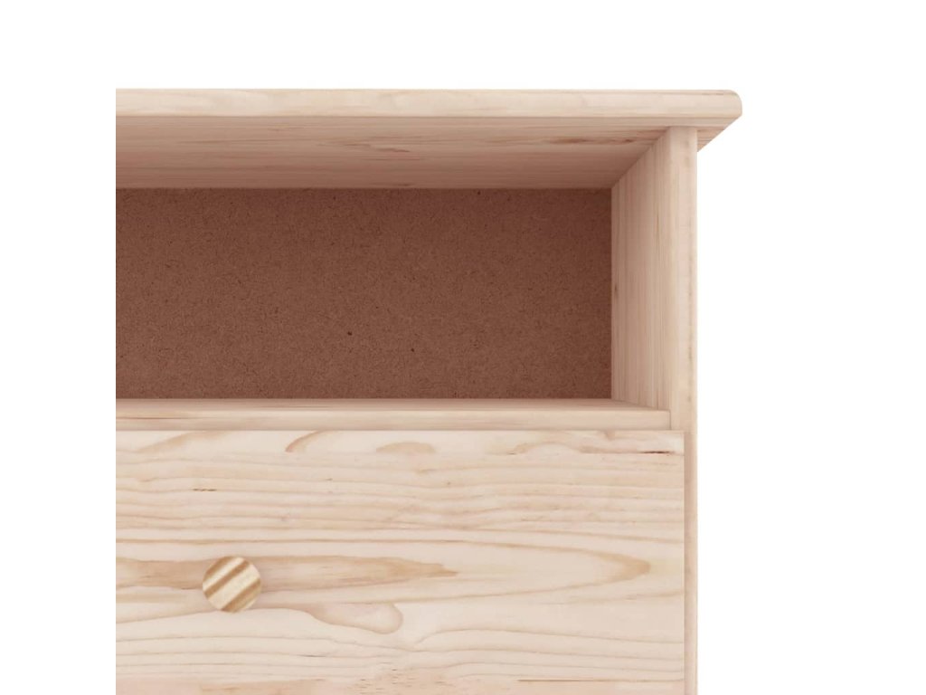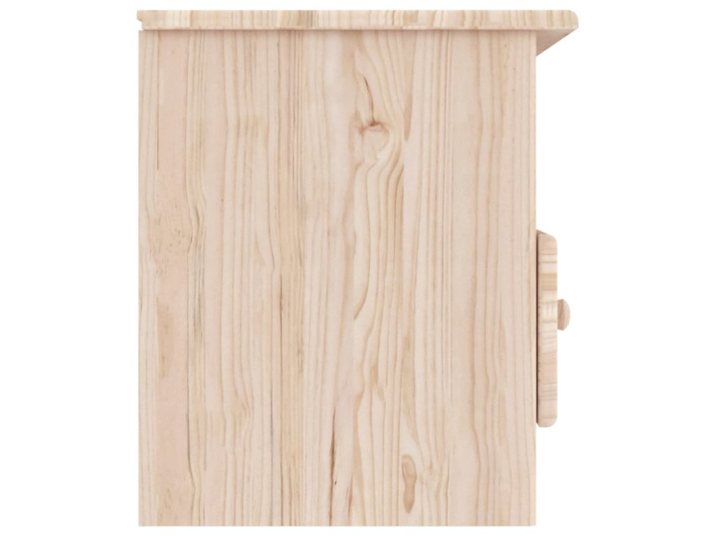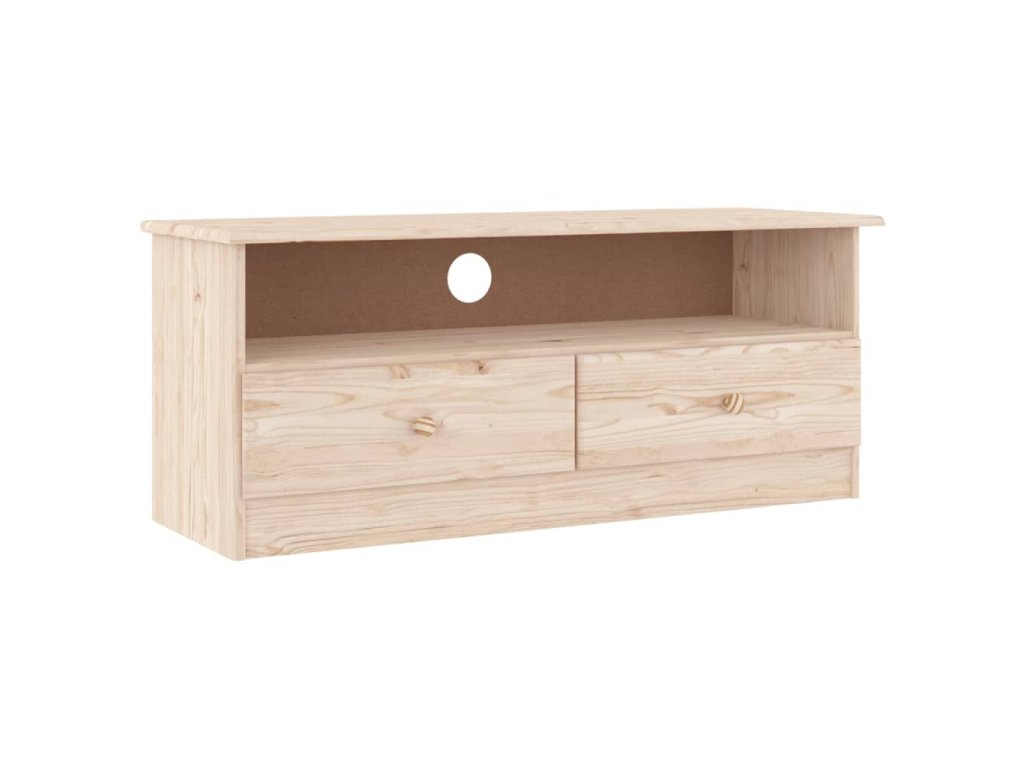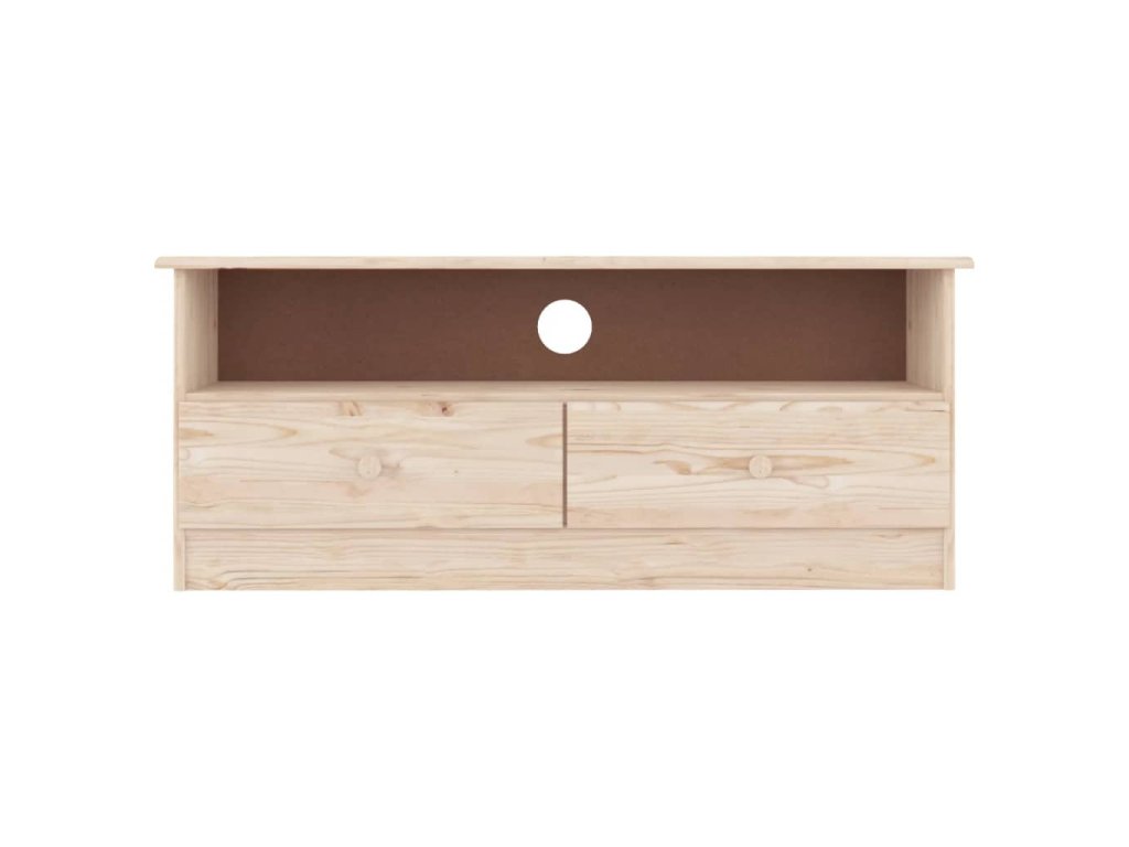 - Borovicový masív: Borovicový masív je krásny prírodný materiál. Borovicové drevo má rovnú kresbu a nachádzajú sa na ňom hrče, ktoré tomuto materiálu dodávajú charakteristický rustikálny vzhľad. TV stolík je vyrobený z masívneho borovicového dreva a je odolný a pevný.
