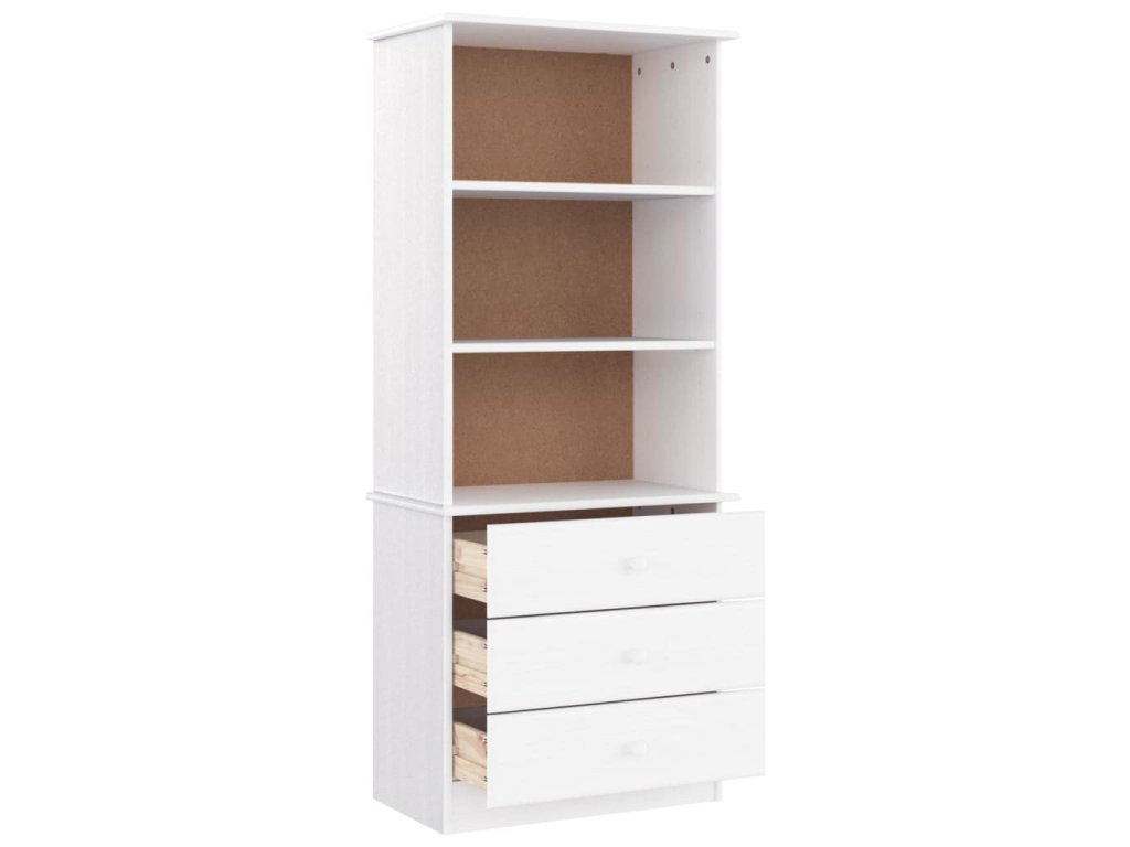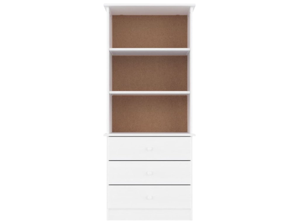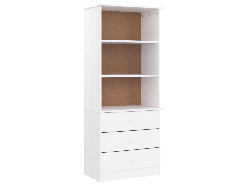 - Borovicový masív: Borovicový masív je krásny prírodný materiál. Borovicové drevo má rovnú kresbu a nachádzajú sa na ňom uzly, ktoré tomuto materiálu dodávajú charakteristický rustikálny vzhľad. Regál na knihy je vyrobený z masívneho borovicového dreva a je odolný a pevný.