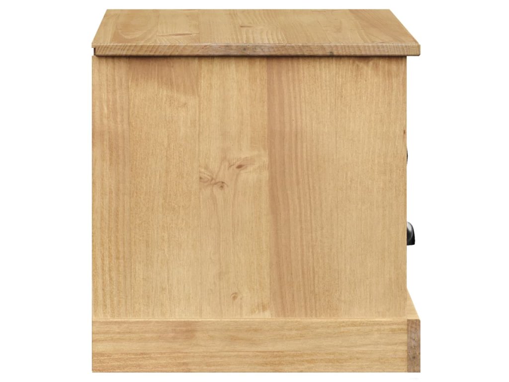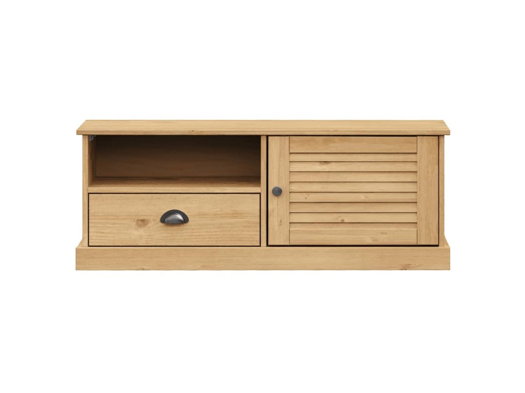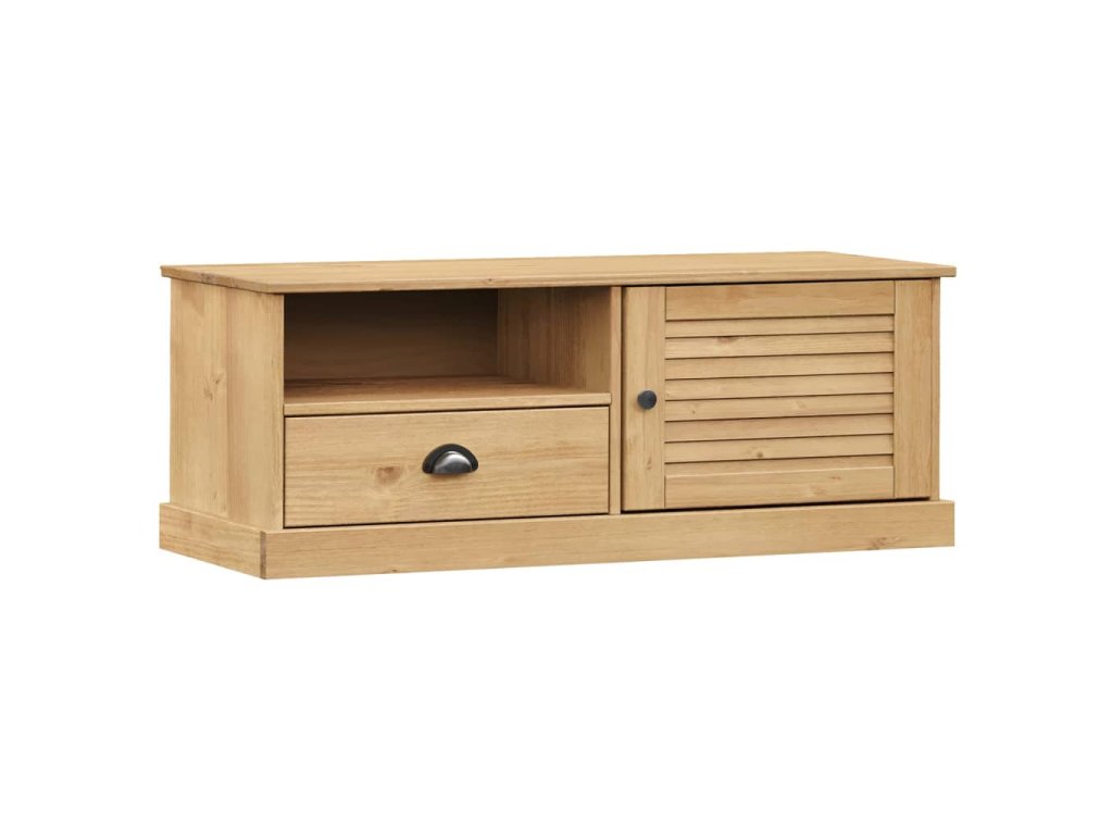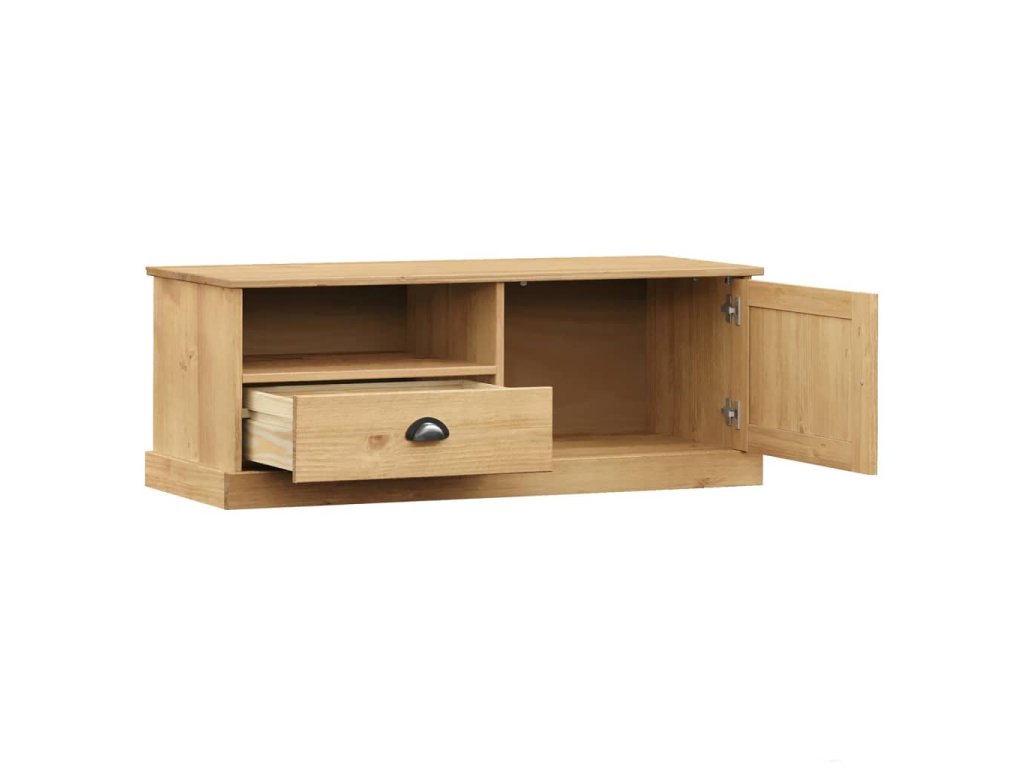 - Borovicový masív: Borovicový masív je krásny prírodný materiál. Borovicové drevo má rovnú kresbu a nachádzajú sa na ňom hrče, ktoré tomuto materiálu dodávajú charakteristický rustikálny vzhľad. TV stolík je vyrobený z masívneho borovicového dreva a je odolný a pevný.