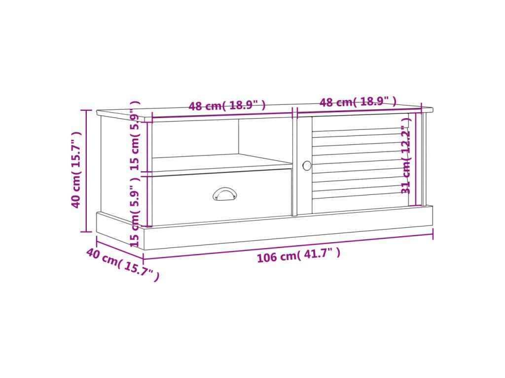 - Dostatok úložného priestoru: Televízna jednotka má 1 zásuvku, 1 otvorenú priehradku a 1 priehradku s dvierkami, ktoré poskytujú dostatok úložného priestoru na uloženie časopisov, kníh, DVD a multimediálnych zariadení dobre organizovaných a na dosah.