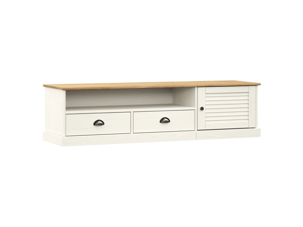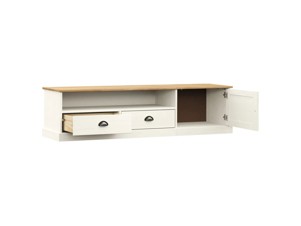 - Borovicový masív: Borovicový masív je krásny prírodný materiál. Borovicové drevo má rovnú kresbu a nachádzajú sa na ňom hrče, ktoré tomuto materiálu dodávajú charakteristický rustikálny vzhľad. TV stolík je vyrobený z masívneho borovicového dreva a je odolný a pevný.