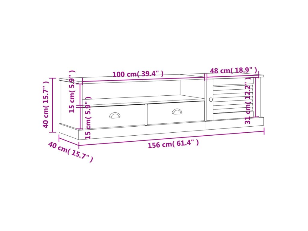 Táto drevená TV skrinka s dostatkom úložného priestoru je praktickým a pútavým doplnkom do vašej obývačky alebo spálne.