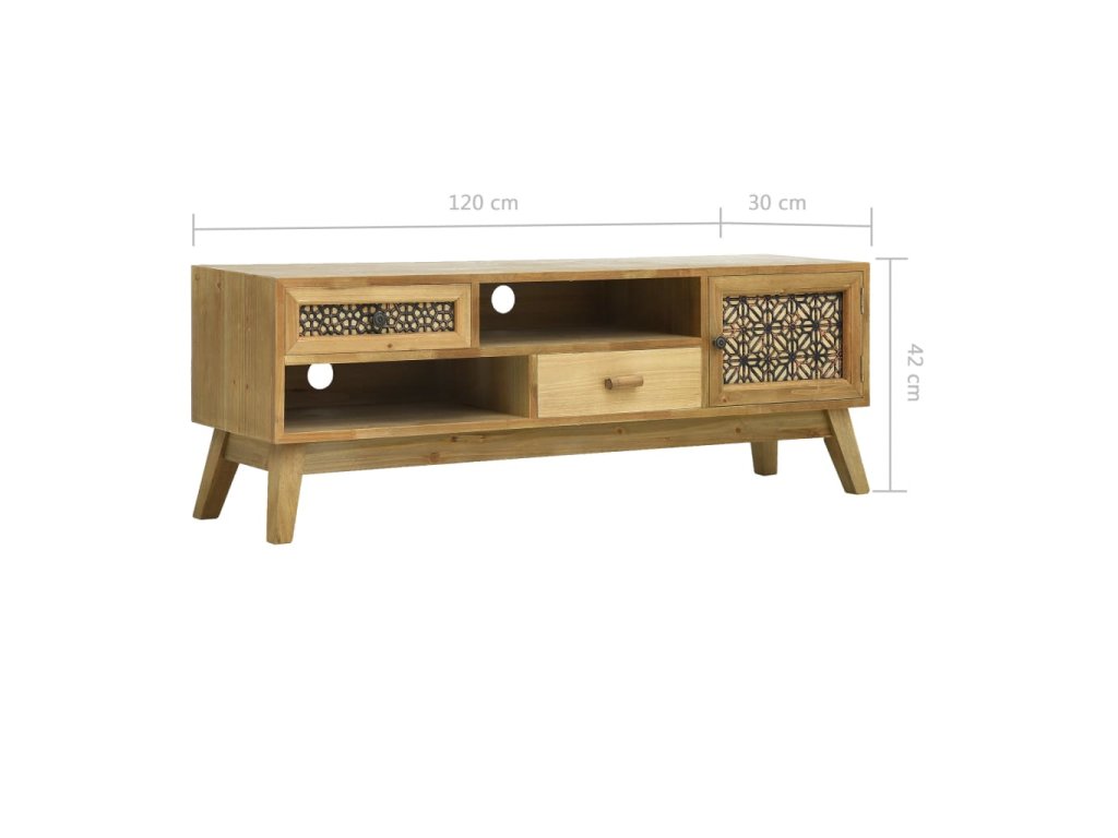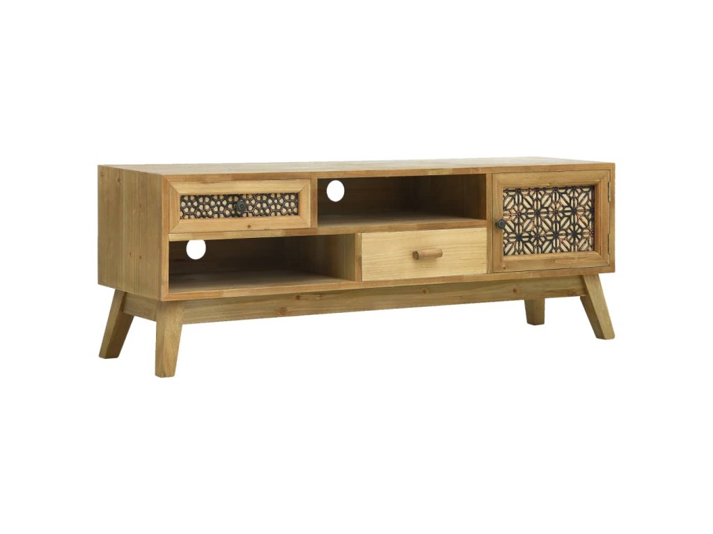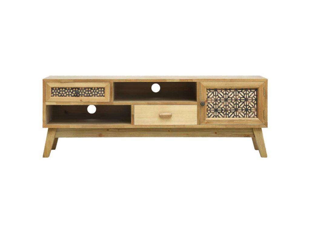 Vneste do svojho bývania nádych rustikálnej atmosféry s touto štýlovou drevenou komodou! Táto nádherná TV skrinka obsahuje zásuvky a dvierka s rôznymi dekoratívnymi vzormi a dizajnmi, ktoré jej dodávajú elegantný vzhľad a zároveň poskytujú množstvo úložného priestoru. Poslúži ako praktický a dekoratívny doplnok do obývačky či do spálne.