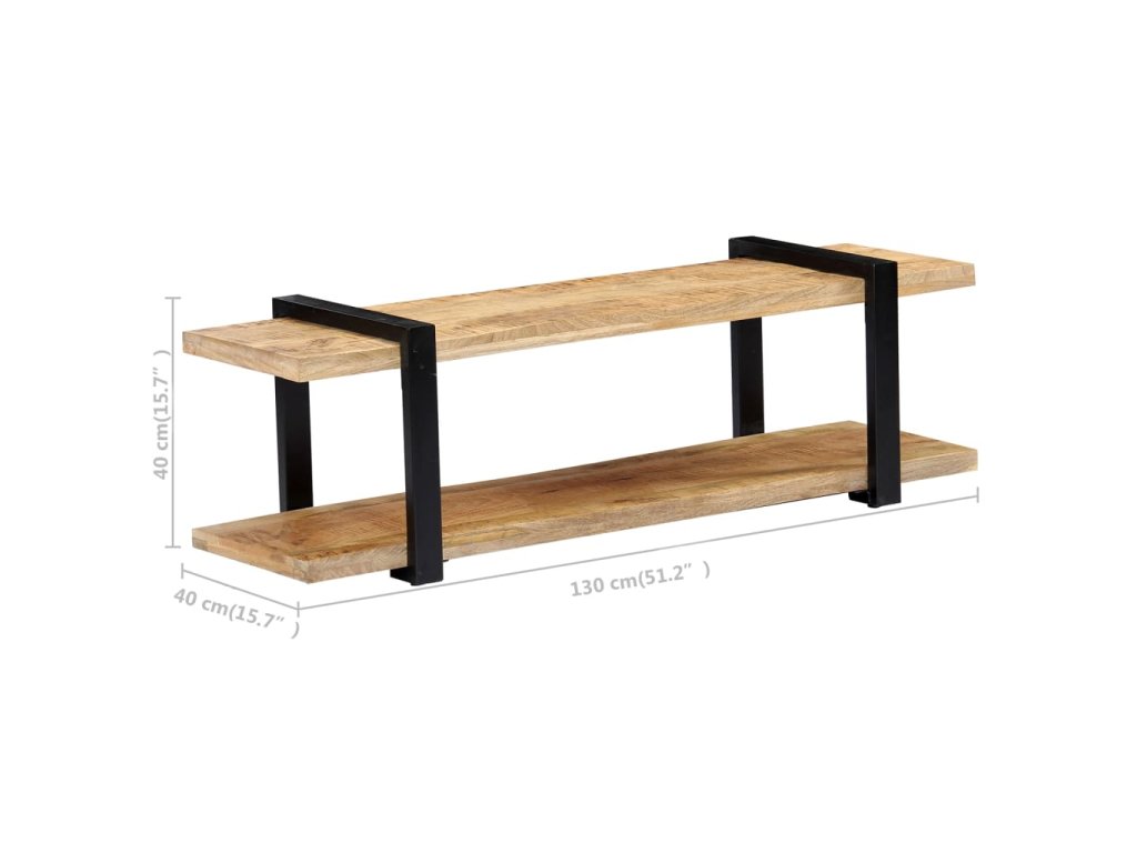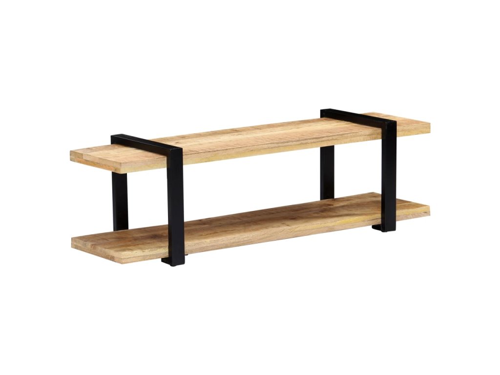 TV skrinka je vyrobená z masívneho mangovníkového dreva, čo je pevné a tvrdé drevo s hustou štruktúrou a na povrchu má krásne hnedé alebo zlaté pruhy a kontúry. Každý krok procesu výroby sa vykonáva s najväčšou starostlivosťou, či už ide o leštenie, natieranie alebo lakovanie. Vďaka remeselnému spracovaniu a krásnej štruktúre dreva je každý kus nábytku jedinečný a trochu odlišný od ostatných. Práškované oceľové nohy jej dodávajú stabilitu. Do spodnej poličky môžete uložiť DVD prehrávače, herné konzoly, streamingové zariadenia a nosiče médií.