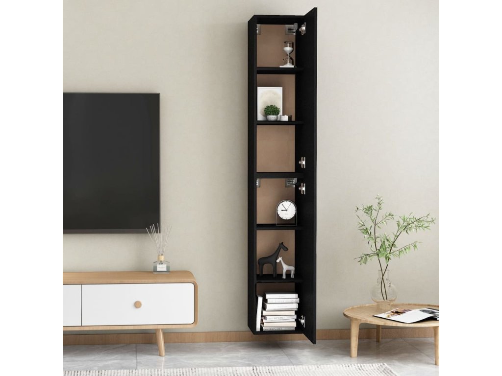 Nástenné TV skrinky sú vyrobené z kompozitného dreva, vďaka čomu sú robustné a stabilné. Každá skrinka má 2 police, a tak predstavuje ideálne miesto na odkladanie kníh, časopisov, DVD a iných predmetov. Nástenné skrinky sa navyše dajú ľahko očistiť vlhkou handričkou.
