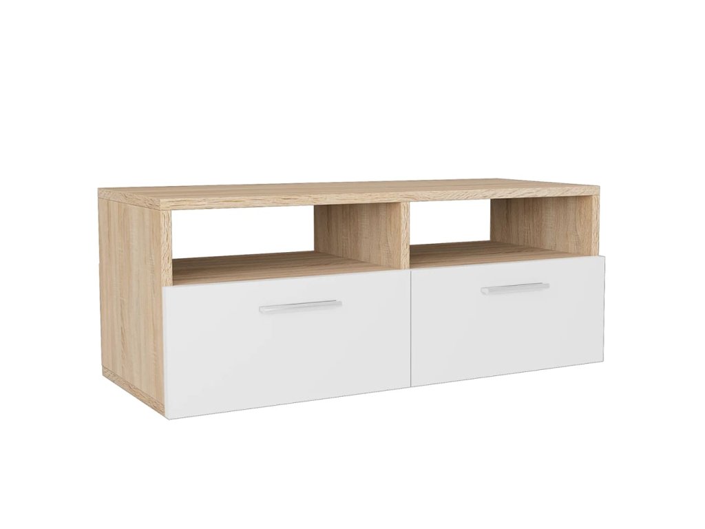 Skrinky na Hi-Fi vežu sú vyrobené z kompozitného dreva s PVC hranami a sú stabilné a trvácne. Každá skrinka má dve otvorené poličky a dve skrinky s dvierkami, ktoré sa vyklápajú smerom nadol a poskytujú dostatok priestoru na DVD prehrávač, hernú konzolu, digitálny prijímač alebo mediálne nosiče. Tieto TV skrinky s čistými líniami predstavujú skvelý doplnok do spálne či obývačky. Montáž je jednoduchá.