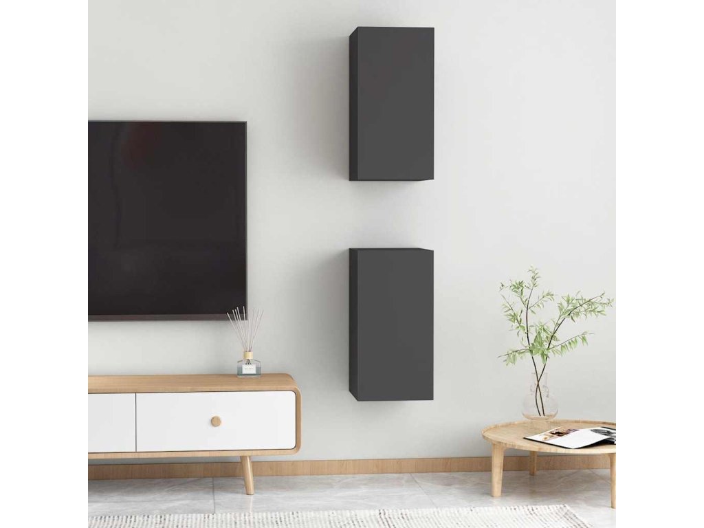 Nástenné TV skrinky sú vyrobené z kompozitného dreva, vďaka čomu sú robustné a stabilné. Každá skrinka má 2 police, a tak predstavuje ideálne miesto na odkladanie kníh, časopisov, DVD a iných predmetov. Nástenné skrinky sa navyše dajú ľahko očistiť vlhkou handričkou.
