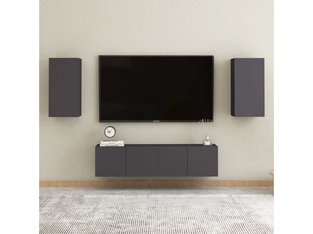Táto závesná sada TV skriniek vytvorí ústredný bod vo vašej obývačke vďaka modernému a štýlovému dizajnu.