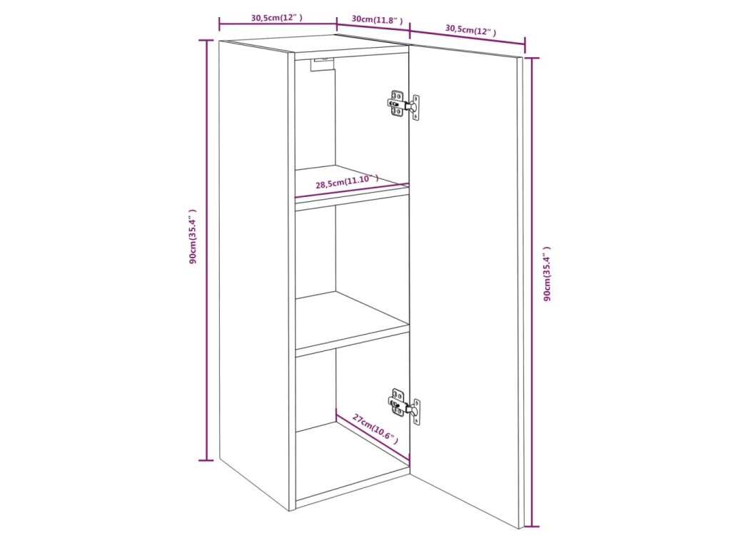 - Rozmery: 30,5 x 30 x 90 cm (Š x H x V)