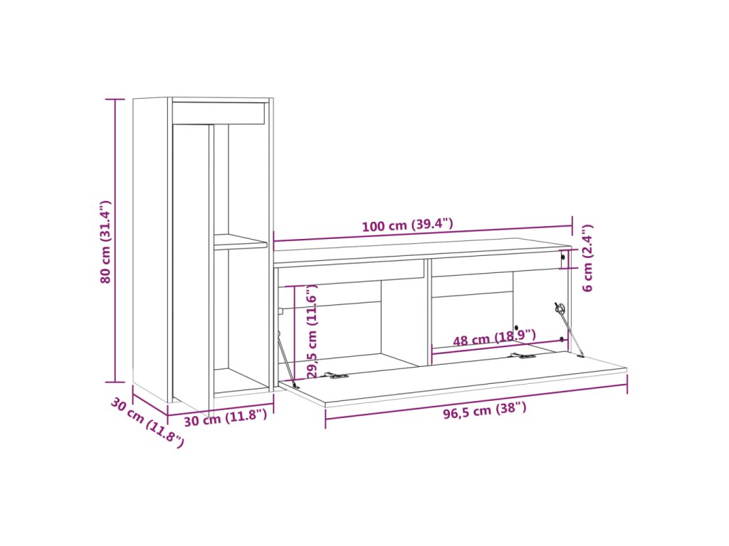 - 1 x TV skrinka: 30 x 30 x 80 cm (Š x H x V)