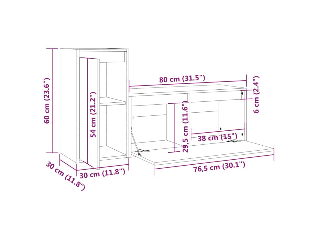 - 1 x TV skrinka: 80 x 30 x 35 cm (Š x H x V)