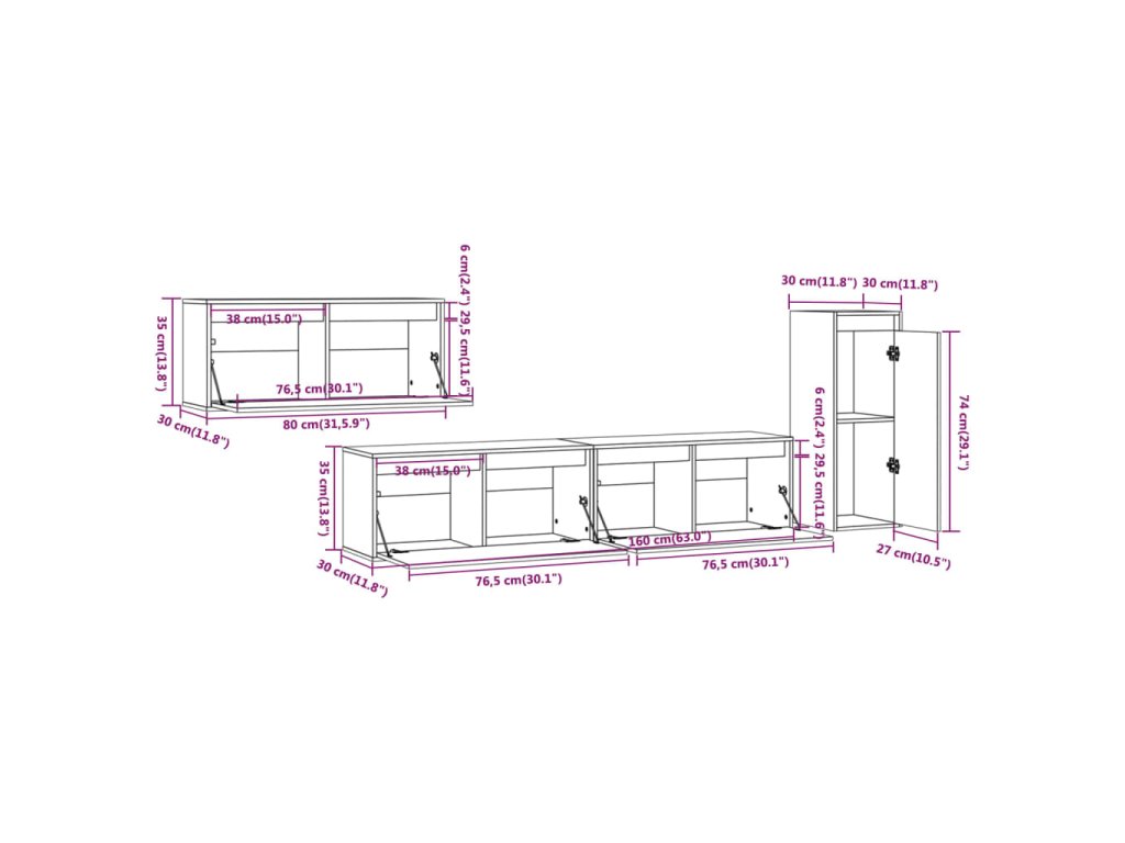 - 3 x TV skrinka: 80 x 30 x 35 cm (Š x H x V)