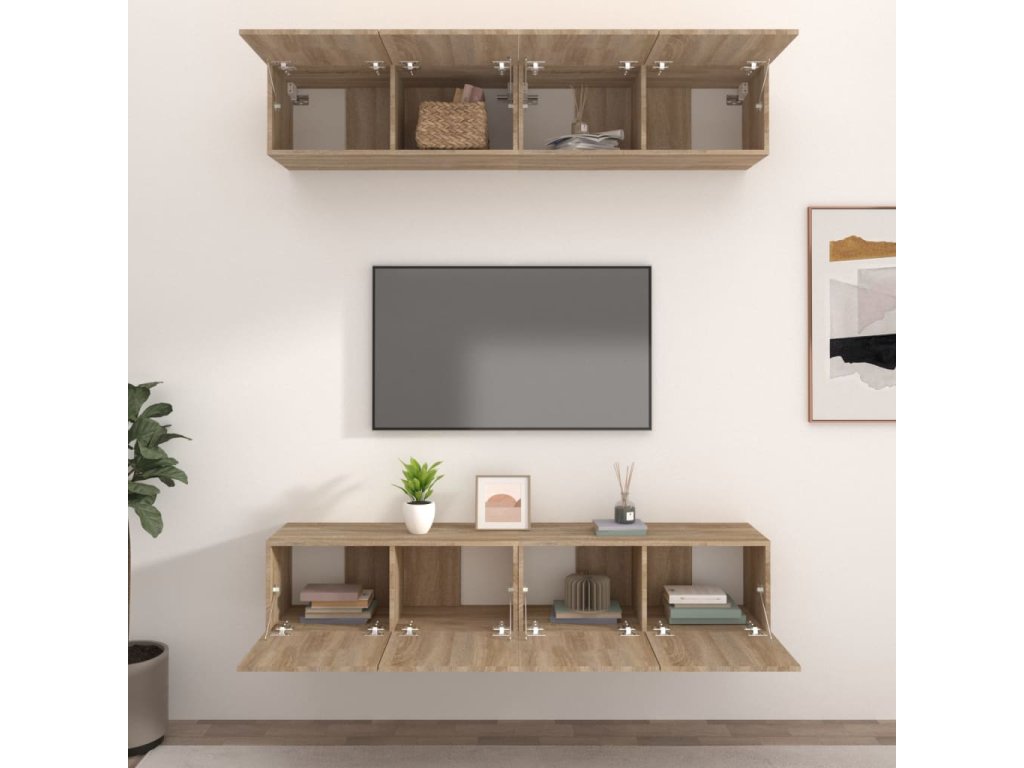 Tieto nástenné TV skrinky majú elegantný a klasický dizajn. Dajú sa ľahko pripevniť na stenu, vďaka čomu vytvorí nielen ozdobné, ale aj praktické riešenie na uskladnenie vecí vo vašej domácnosti.