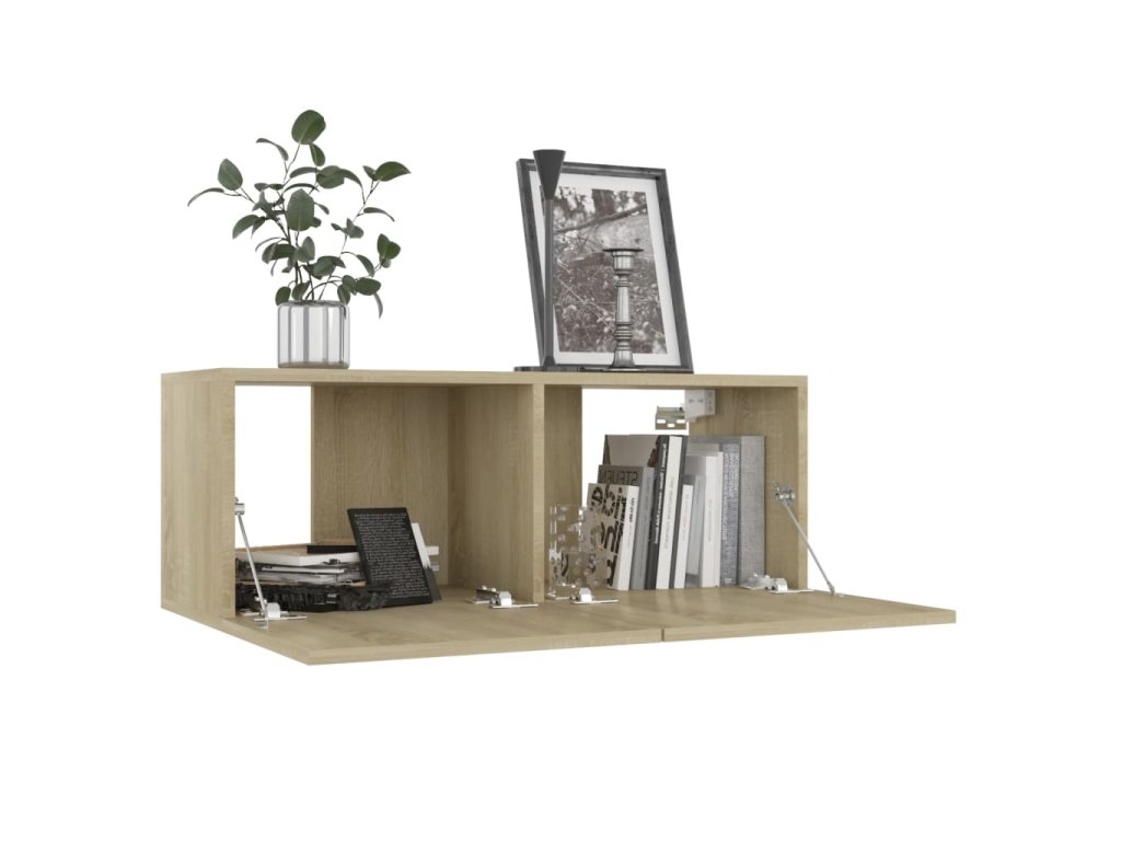 Televízny stolík je pripevnený k stene, čo z neho robí nadčasový doplnok do vašej domácnosti. Poskytuje dostatok úložného priestoru, vďaka čomu je ideálnym miestom na uloženie všetkých kníh, časopisov, diskov DVD alebo iných predmetov. Stereo skrinka sa ľahko udržiava a čistí vlhkou handričkou.