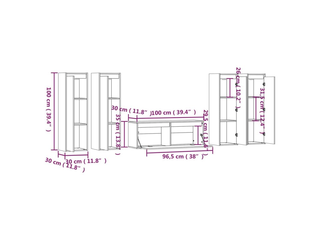 - 4 x TV skrinka: 30 x 30 x 100 cm (Š x H x V)