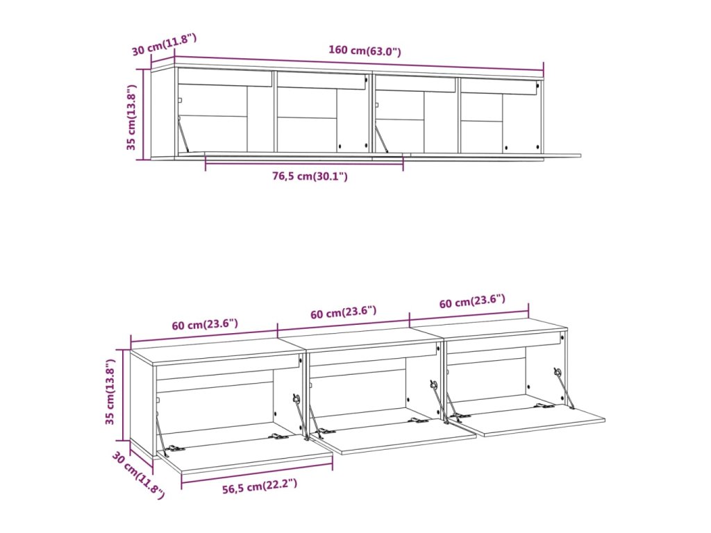 - 3 x TV skrinka: 60 x 30 x 35 cm (Š x H x V)