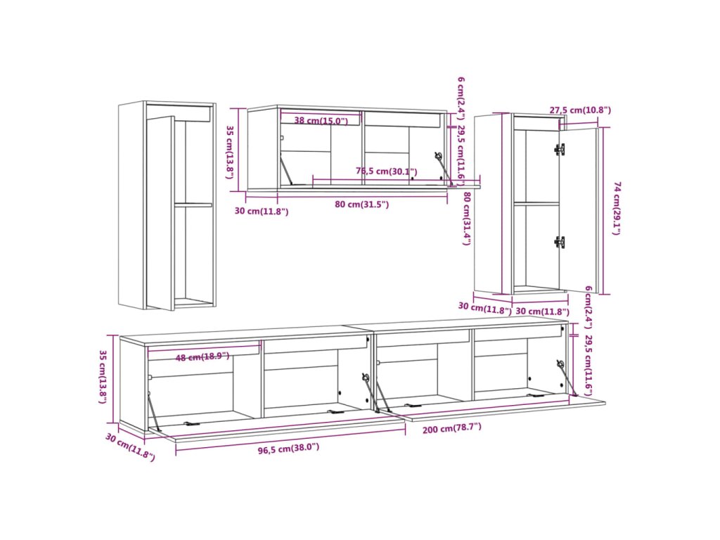 - 1 x TV skrinka: 80 x 30 x 35 cm (Š x H x V)