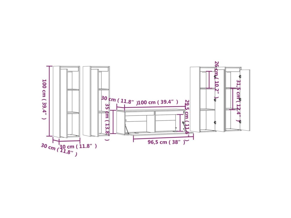 - 4 x TV skrinka: 30 x 30 x 100 cm (Š x H x V)