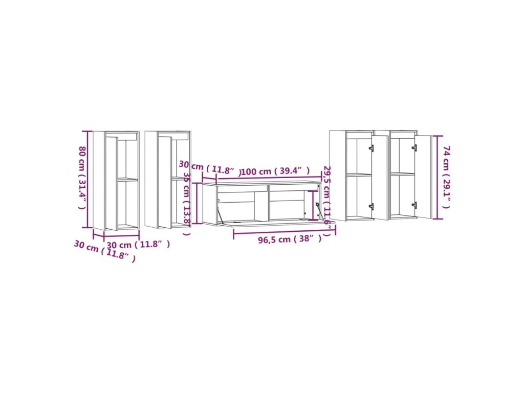 - 4 x TV skrinka: 30 x 30 x 80 cm (Š x H x V)