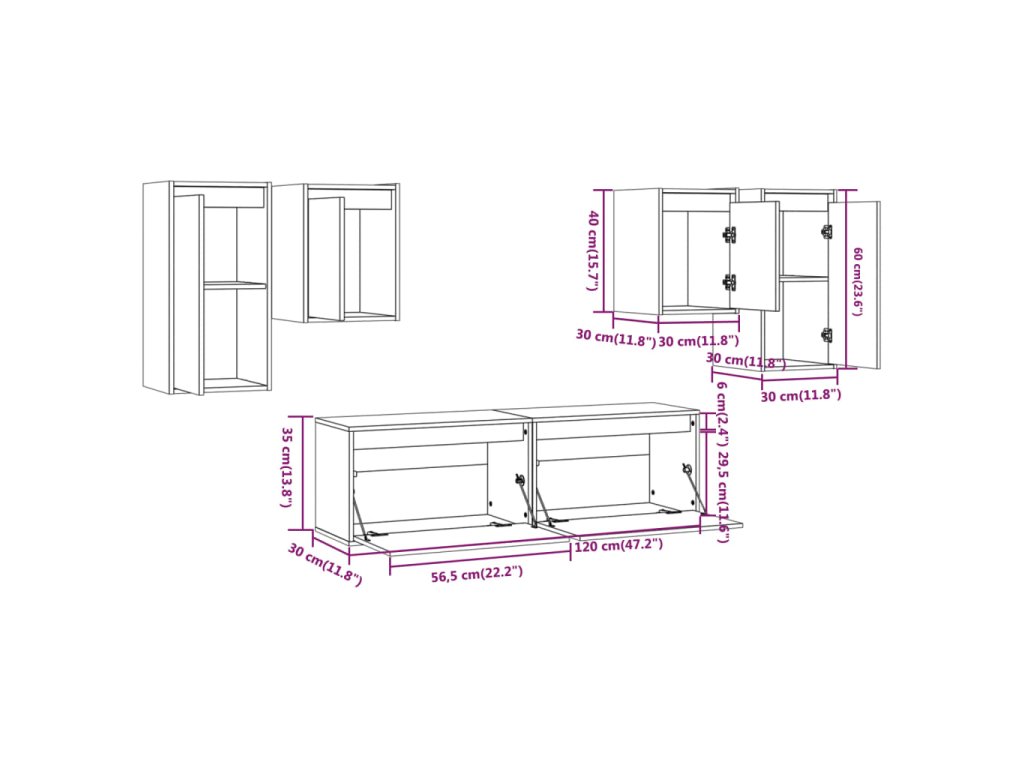 - 2 x TV skrinka: 30 x 30 x 60 cm (Š x H x V)