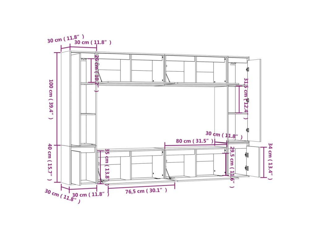 - 4 x TV skrinka: 80 x 30 x 35 cm (Š x H x V)