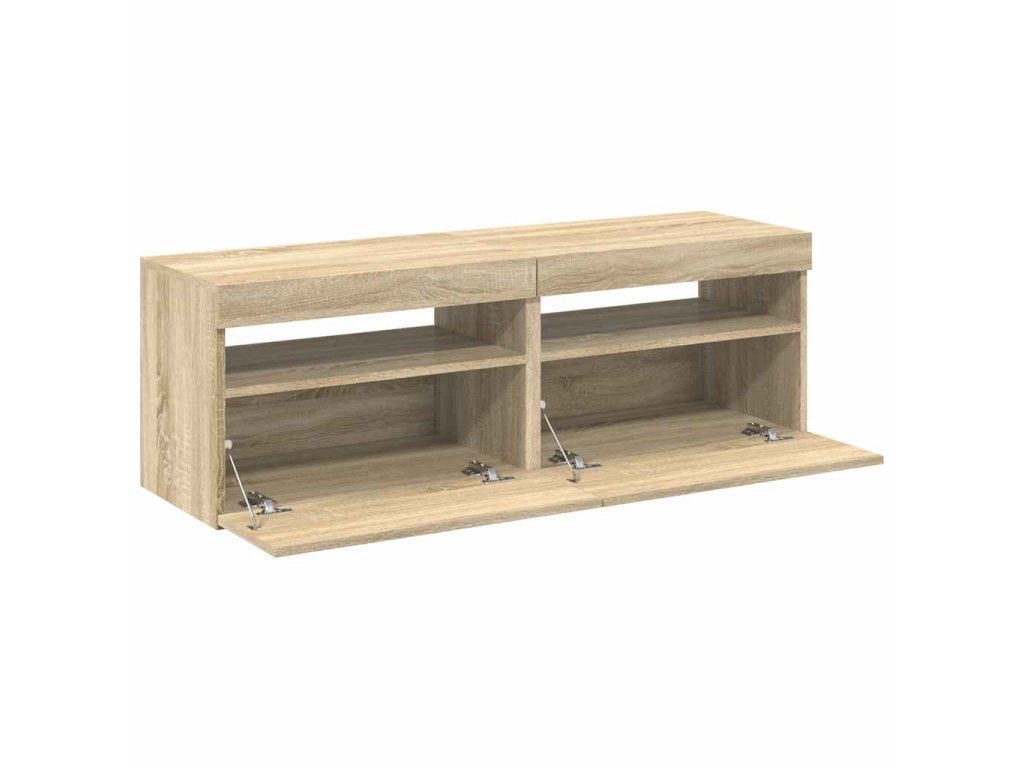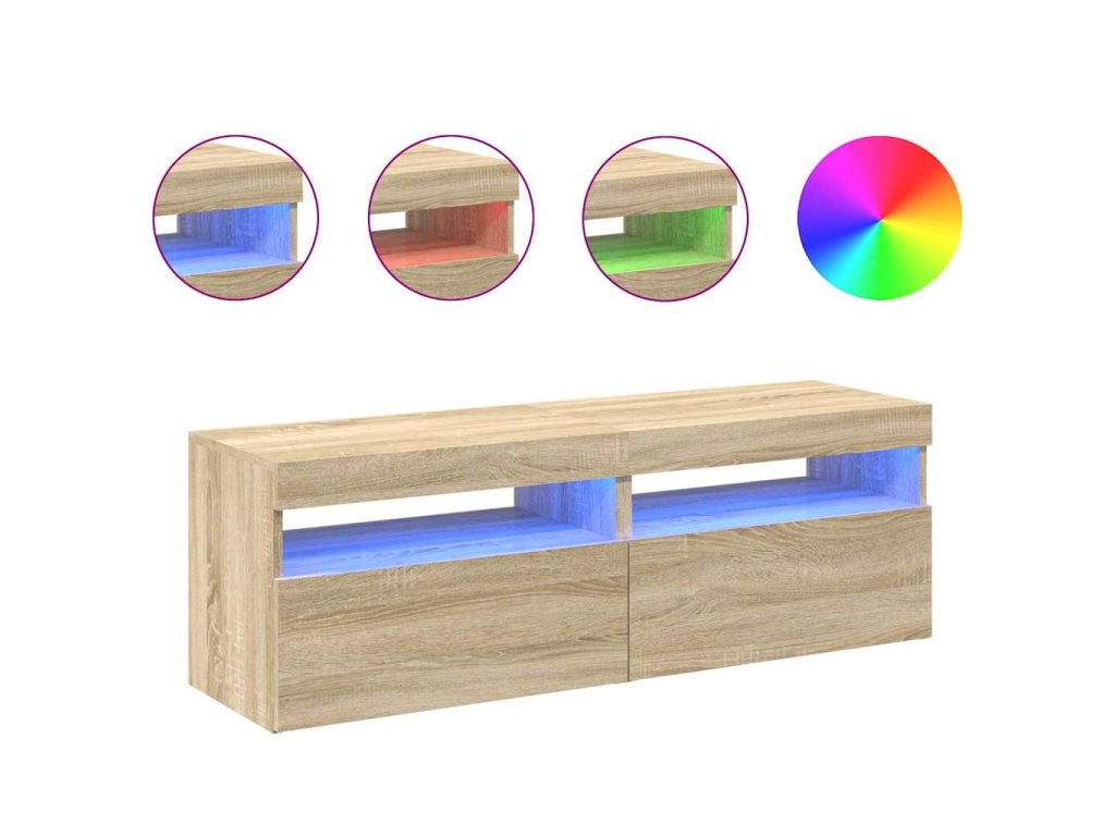 Vďaka robustnej konštrukcii je HiFi skrinka veľmi odolná. Budete mať dostatok miesta na to, aby bol váš DVD prehrávač, herná konzola, streamovacie zariadenie a nosiče médií prehľadne usporiadané. TV skrinka je vybavená RGB LED svetlami, ktoré môžu meniť farby. Farby môžete nechať aj automaticky prispôsobovať. LED svetlá majú moderný vzhľad a dodávajú štýl. Okrem toho sa táto TV jednotka ľahko čistí vlhkou handričkou.