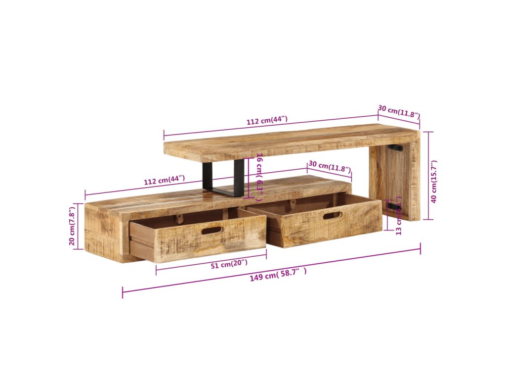- Materiál: Mangovníkový masív s prírodnou povrchovou úpravou, železo s práškovou povrchovou úpravou