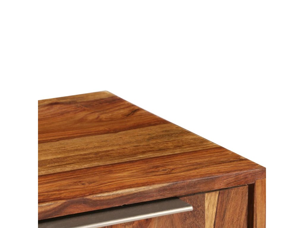 Táto skrinka je vyrobená z masívneho akáciového dreva a môže byť tiež použitá aj ako komoda alebo HiFi skrinka. Akácia je tropické tvrdé drevo, ktoré sa vyznačuje svojou bohatou štruktúrou a je známe aj ako ružové alebo palisandrové drevo. Každý krok procesu výroby sa vykonáva s maximálnou starostlivosťou, či už ide o leštenie alebo lakovanie. Vďaka remeselnému spracovaniu a krásnej textúre dreva je každý kus nábytku jedinečný a trochu odlišný od ostatných kusov. Táto skrinka má pevnú vrchnú dosku, na ktorú môžete položiť rôzne ozdobné predmety, ako napríklad košíky s ovocím alebo vázy. Bola navrhnutá s 2 priehradkami a 2 skrinkami a poskytuje priestor na uloženie DVD, multimediálnych zariadení alebo iných drobností, ktoré potrebujete mať na dosah ruky. Na zadnej strane má dva otvory, do ktorých môžete vložiť káble. Kovové nohy jej dodávajú pevnosť, ale aj moderný dizajn z polovice minulého storočia. Montáž je jednoduchá.