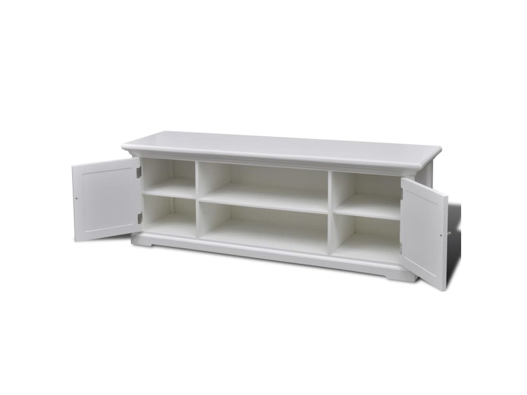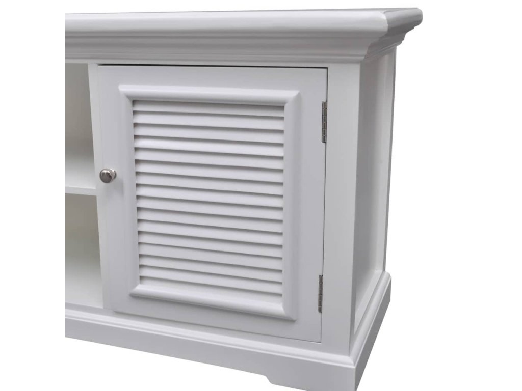 TV stolík je vyrobený z robustného MDF a borovicového dreva, a tak odoláva každodennému používaniu. Vďaka bielej povrchovej úprave sa dá ľahko očistiť navlhčenou handričkou.