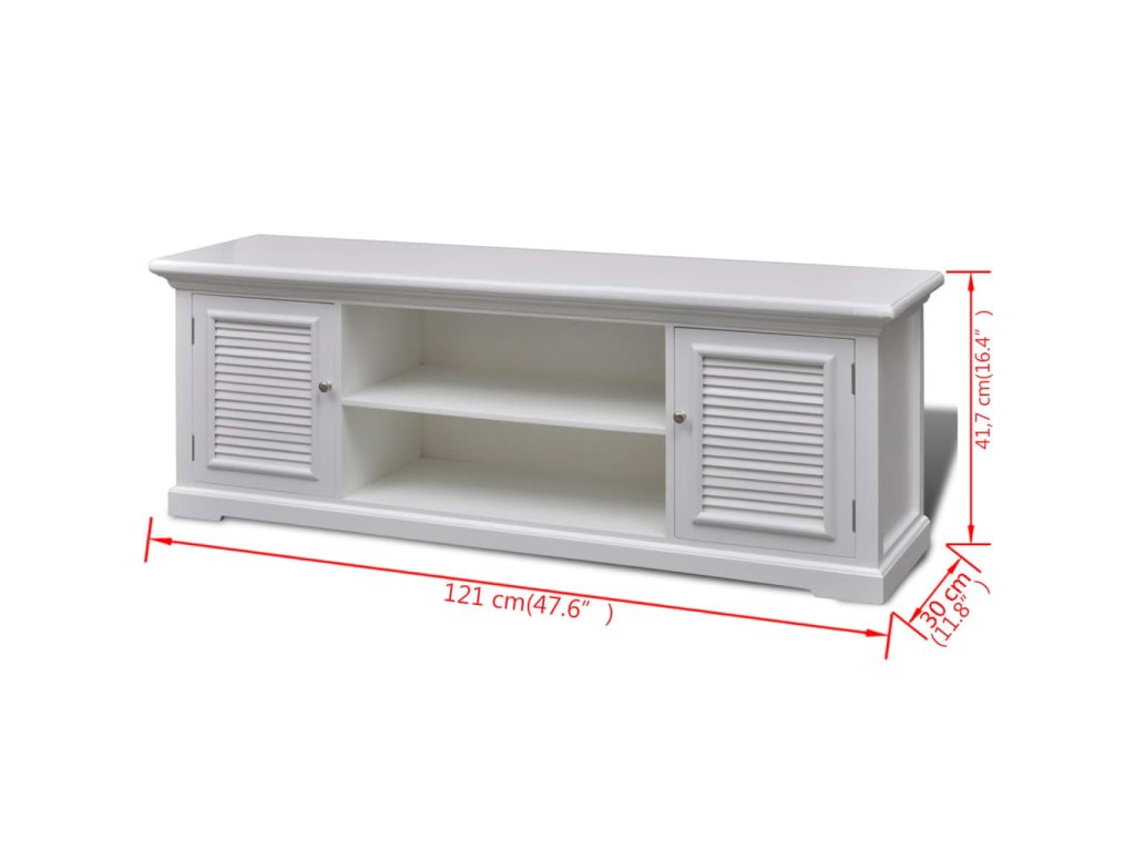 Televízna skrinka obsahuje štyri poličky s dvoma dvierkami, ktoré ponúkajú zakrytý úložný priestor na hry, filmy, hudbu a podobne. Do ďalších dvoch poličiek sa zmestia rôzne zariadenia, ako napríklad CD a DVD prehrávače či DVR systémy. Na širokú vrchnú dosku TV skrinky si môžete postaviť širokouhlý plazmový alebo LCD televízor.