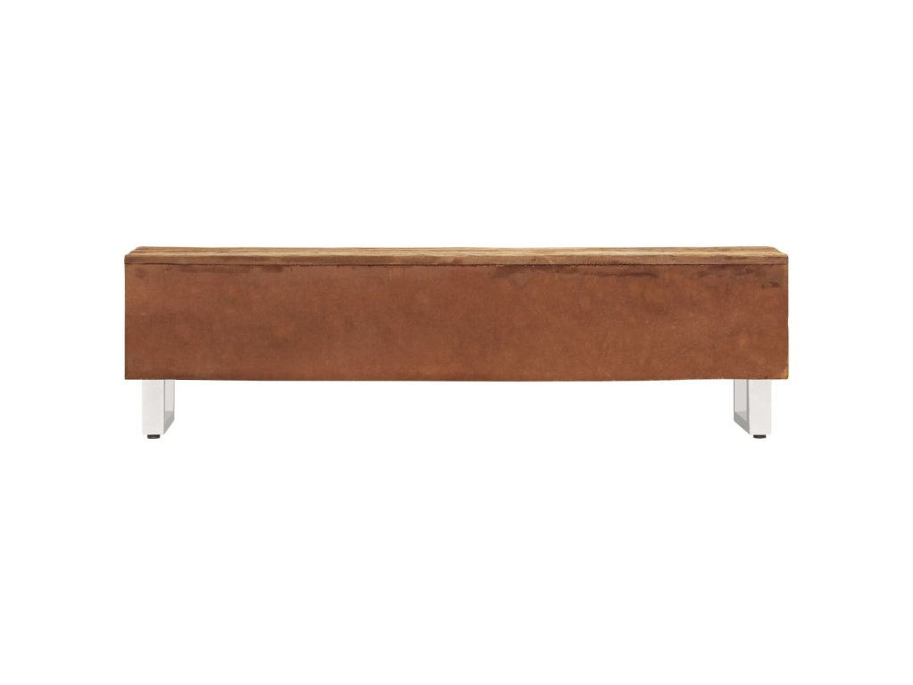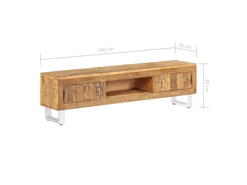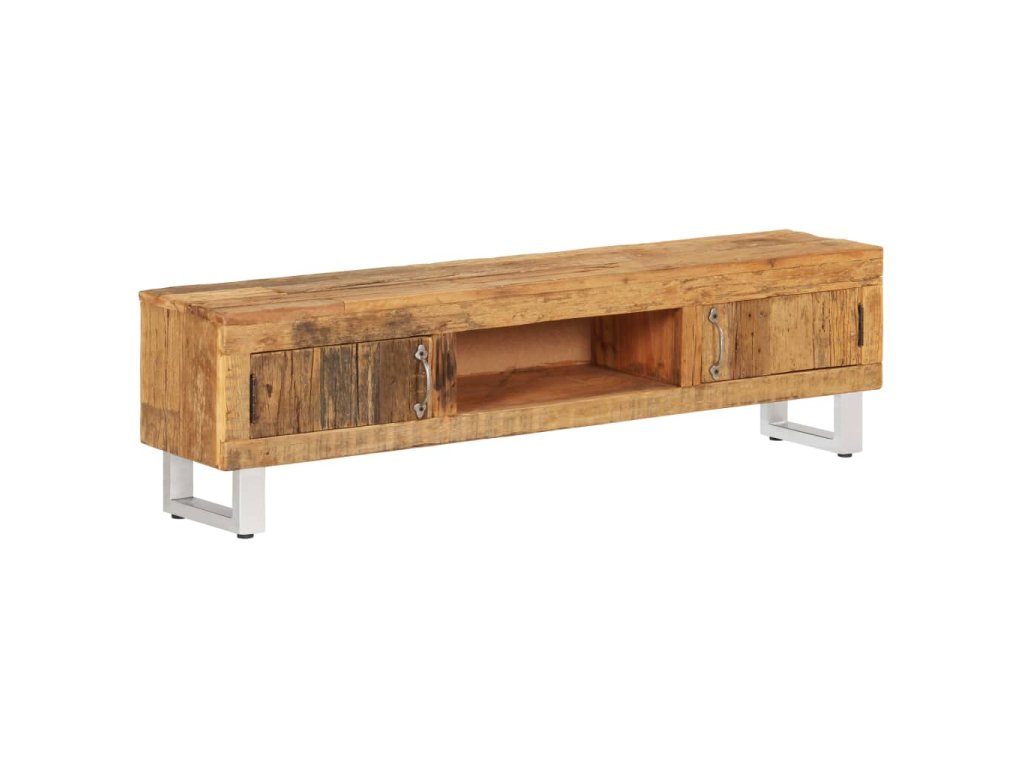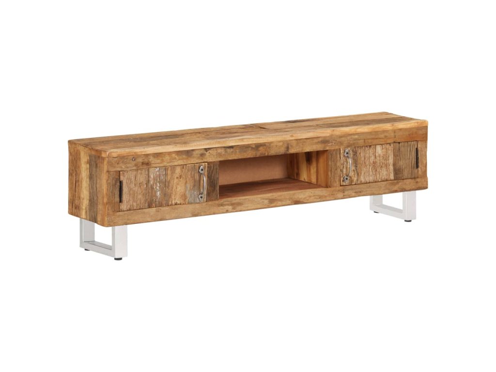 TV skrinka je ručne vyrobená z recyklovaného masívu. Drsný vzhľad a kvalitné remeselné opracovanie dodávajú skrinke pôsobivý retro dizajn. Každý krok výrobného procesu sa vykonáva s najväčšou starostlivosťou, či už je to leštenie, natieranie alebo lakovanie. Vďaka krásnej textúre dreva je každý kus nábytku výnimočný a trochu odlišný od ostatných.