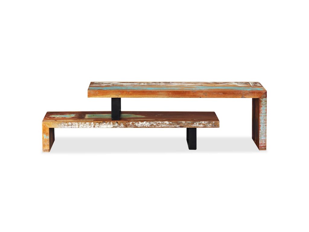 Tento jedinečný drevený TV stolík pozostáva z dvoch častí, ktoré môžete poukladať do rôznych tvarov a vyžaruje z neho vintage šarm, a tak predstavuje výrazný doplnok do interiéru. TV stolík môžete využívať aj ako nízku skrinku, komodu či príručný stolík.