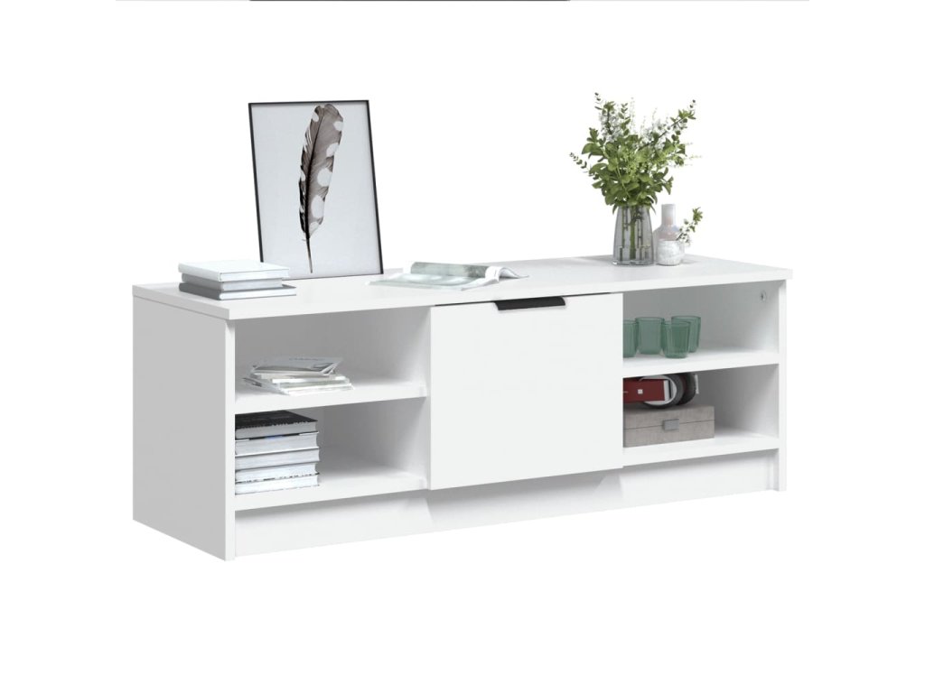 - Dostatok úložného priestoru: Stereo skrinka obsahuje priehradky na prehľadné usporiadanie DVD prehrávačov, herných konzol, streamovacích zariadení a nosičov médií.