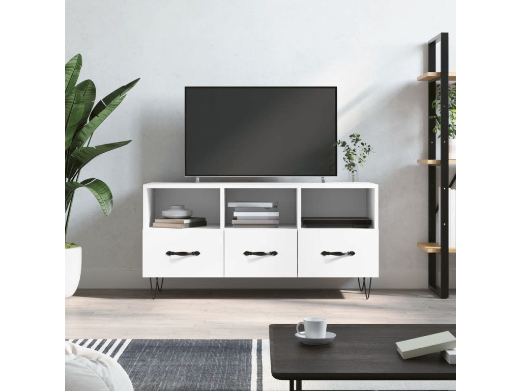 - Pevný materiál: Spracované drevo je mimoriadne kvalitné s hladkým povrchom a vyznačuje sa pevnosťou, stabilitou a odolnosťou proti vlhkosti. TV stolík je vyrobený zo spracovanéno dreva a ľahko sa čistí.
