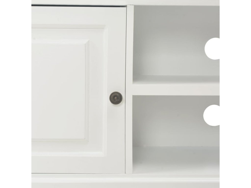 Tento moderný televízny stolík z drevotriesky (MDF) a masívneho dreva Paulownia má 1 dvierka a 2 otvorené priehradky pre uloženie rôznych položiek, ako sú multimediálne zariadenia, herné konzoly, časopisy a podobne. Vďaka 2 káblovým prístupom budú všetky káble skryté. Naša HiFi skrinka sa jednoducho montuje.