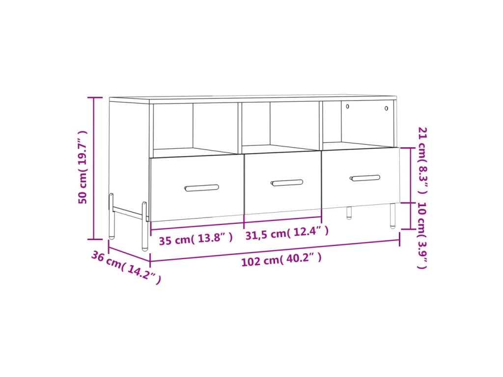 - Rozmery: 102 x 36 x 50 cm (Š x H x V)